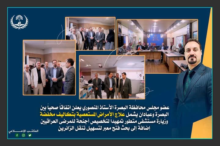 المنصوري يعلن عن اتفاق تعاون طبي بين البصرة وجامعة طب عبادان يهدف إلى معالجة الأمراض المستعصية بتكاليف مخفضة