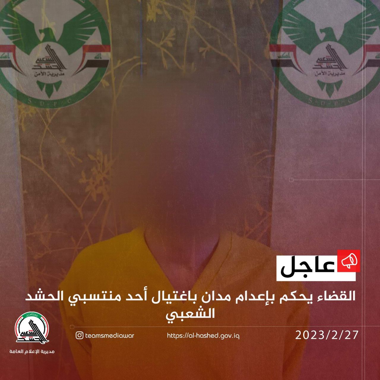الموقع الرسمي ل/كتائب سيد الشهداء/أصدر القضاء العراقي، حكما بالاعدام شنقا حتى الموت بحق مدان قام باغتيال أحد منتسبي قوات الحشد الشعبي.وقد تم إلقاء...