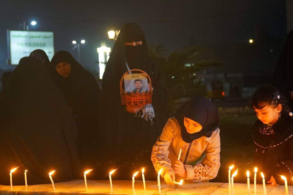 واوقد العشرات من المشاركين في الوقفة الاستذكارية الشموع في الساحة، حيث موقع استشهاده وعروج روحه الى بارئها.