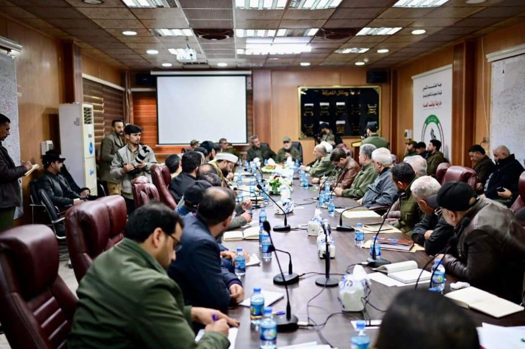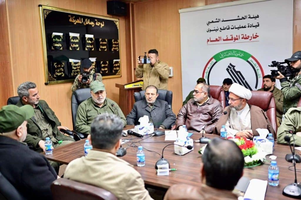 عقد رئيس أركان هيئة الحشد الشعبي عبد العزيز المحمداوي , الأحد, اجتماعاً أمنيا ً موسعا ً في مقر قيادة عمليات نينوى للحشد الشعبي بحضور قادة الألوية المنتشرة ضمن قاطع المسؤولية والمديريات الساندة.