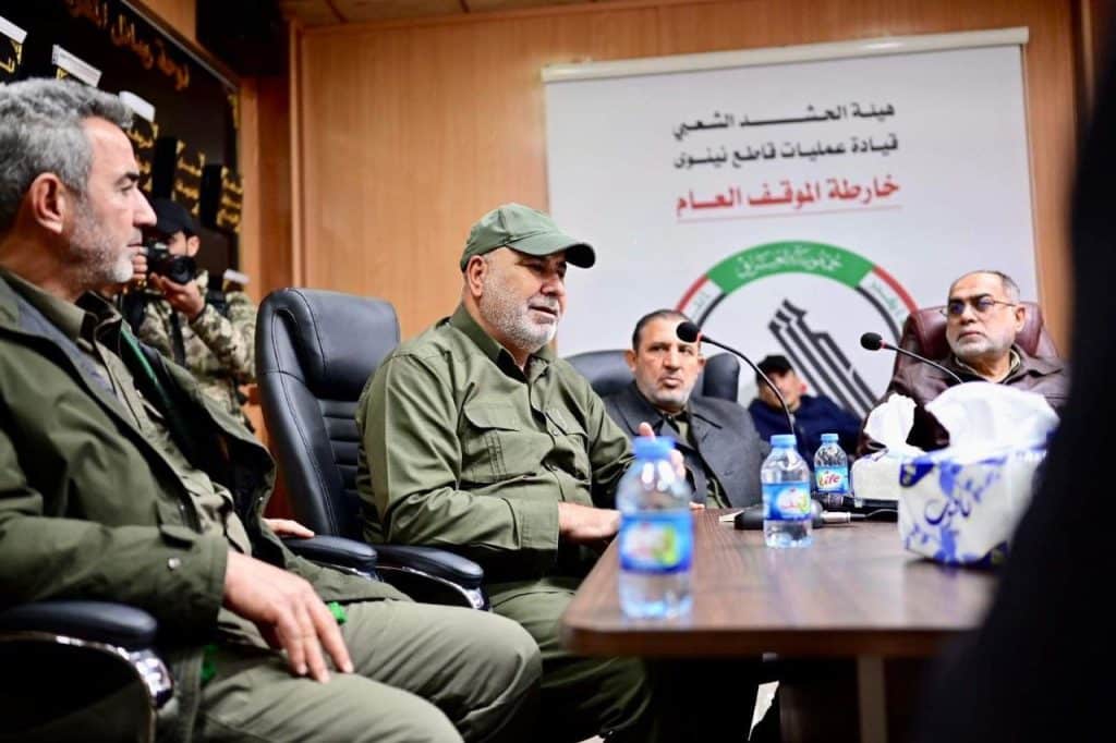 يذكر ان رئيس أركان هيئة الحشد الشعبي عبد العزيز المحمداوي وصل يوم أمس السبت برفقة عدد من قيادات الهيئة الى محافظة نينوى لتفقد القطعات العسكرية والأمنية ومتابعة الوضع الأمني في المحافظة.