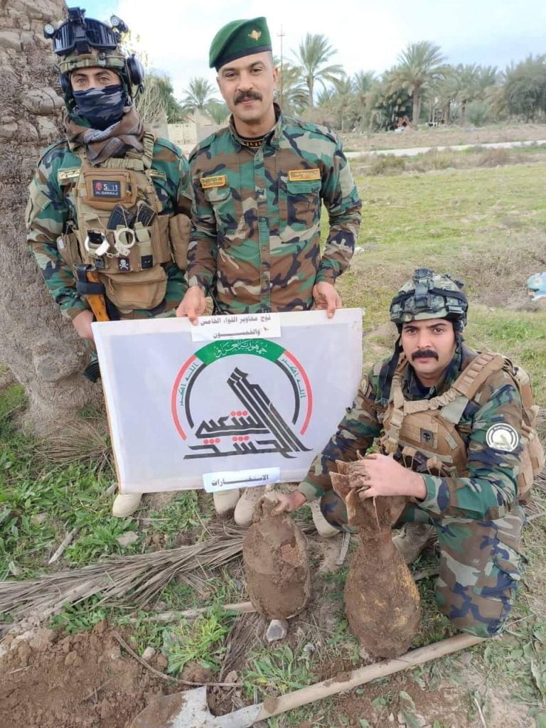 حيث تمكنت قوة من فوج المغاوير في اللواء 55 بالحشد الشعبي من العثور على صاروخين نوع “جهنمي” في منطقة البوعبد الدوار كما عثرت القوة على ثلاثة صواريخ من نوع “نمساوي” في منطقة كريشان ضمن قاطع المسؤولية بمحافظة الأنبار وتم رفع وتفكيك المخلفات الحربية بشكل آمن.