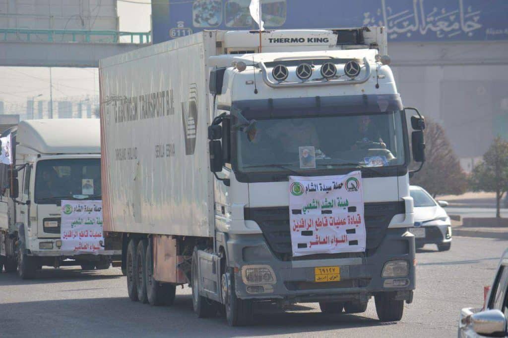 وانطلقت القافلة باشراف قائد عمليات قاطع الرافدين للحشد اللواء ناظم كاظم موسى الساعدي من قبل اللواء العاشر بالحشد حيث تركزت المساعدات على الطعام والشراب والملابس والمدافئ والغطاء.