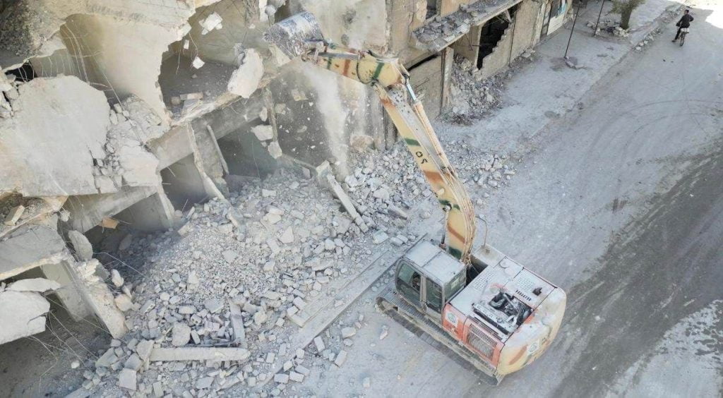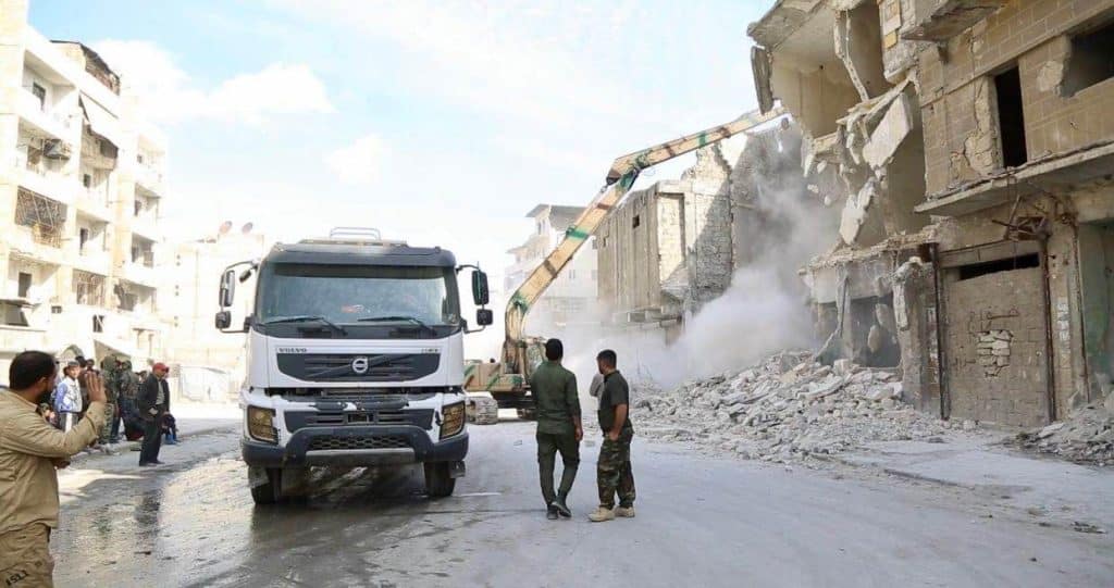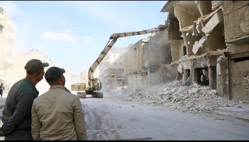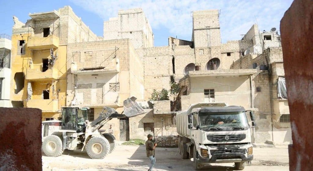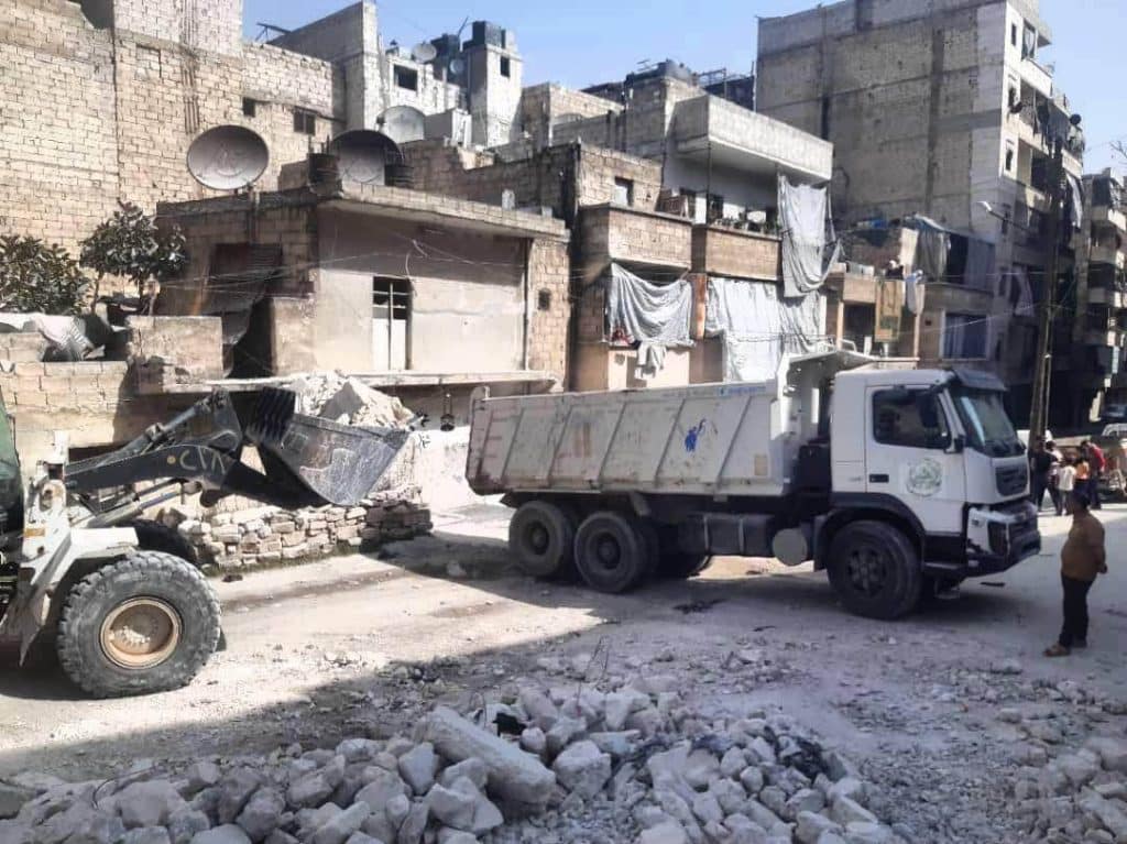 ضمن جهود البعثة الإغاثية العراقية في إزالة الأبنية المتضررة وفتح الطرق المغلقة في مدينة حلب المنكوبة، تجري الأعمال بوتيرة متسارعة في مناطق قطاع الانصاري الشرقي.
