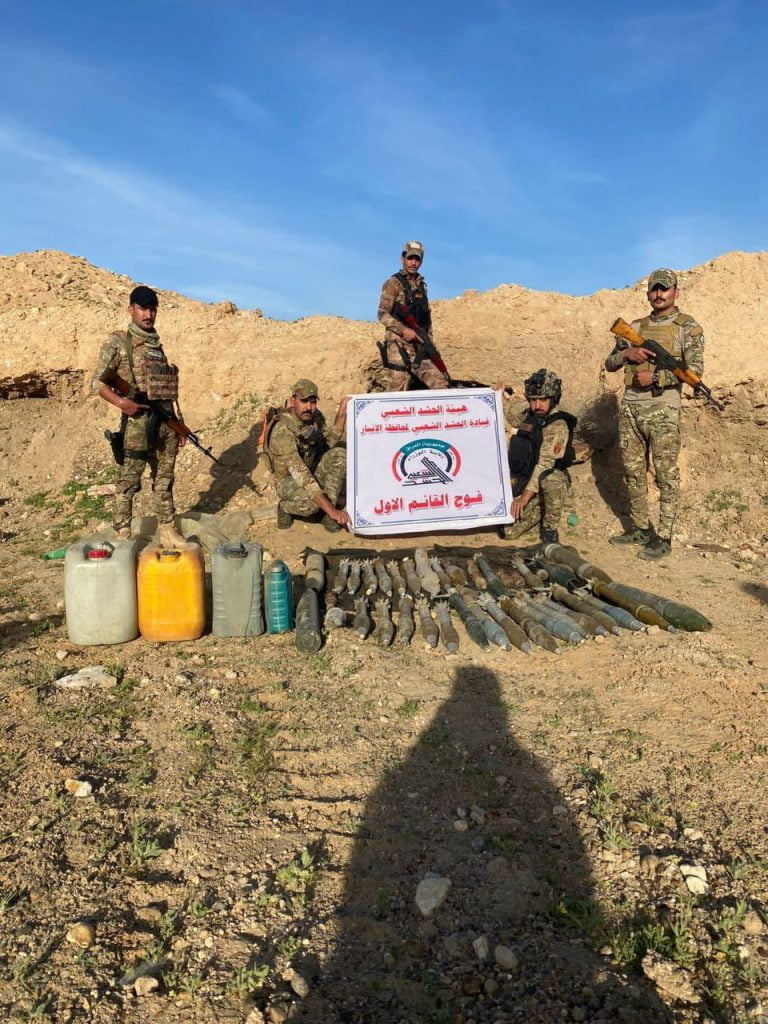 عثرت قوة من فوج القائم الاول قيادة حشد الانبار، الأربعاء، على مضافات تضم اسلحة وعتاد ومتفجرات جنوب صحراء قضاء القائم.