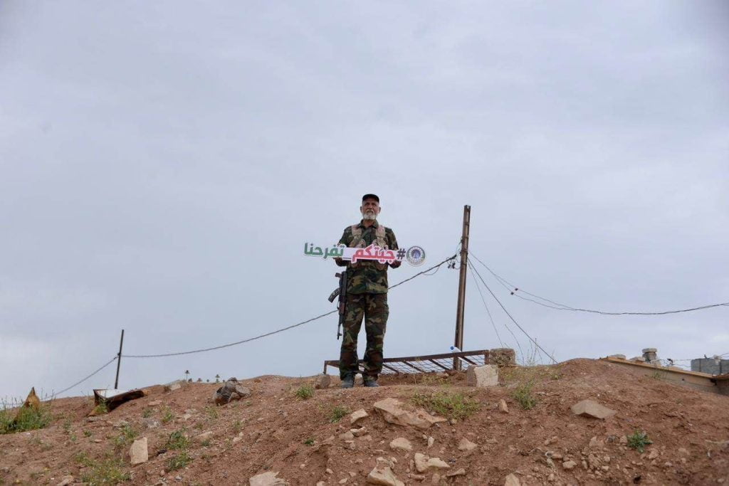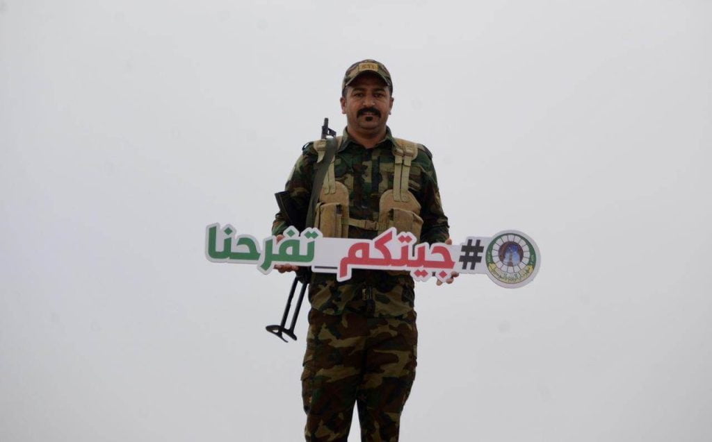 بمناسبة مهرجان الربيع في نينوى،الحشد الشعبي يرحب بطريقته الخاصة من السواتر يرحب بالقادمين لنينوى من كافة المحافظات العراقية.