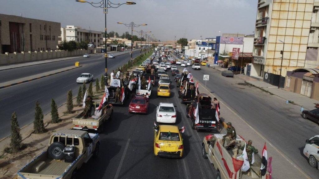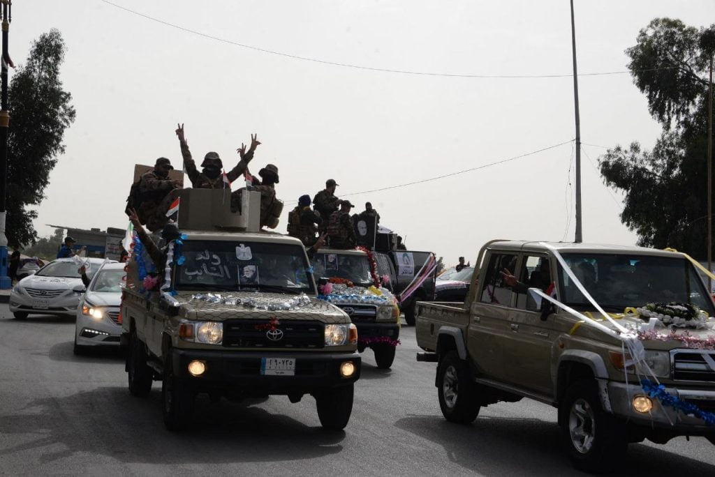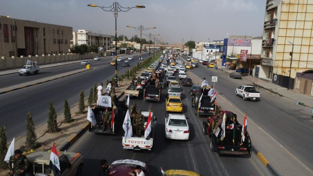 بالصور.. زفة_نصر.. ابطال الحشد الشعبي ومحبيهم يحتفلون بشوارع مدينة الموصل بذكرى تأسيس عيدهم التاسع