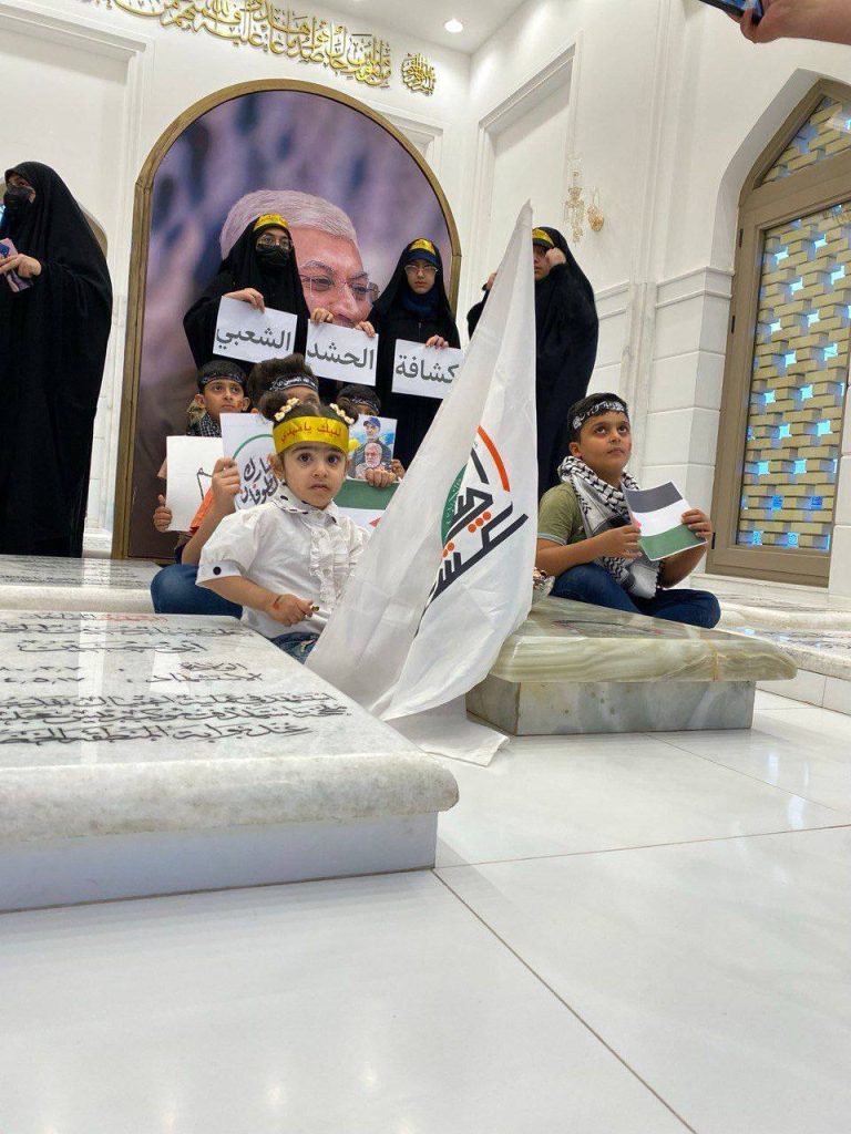 رفع العلم الفلسطيني في روضة الشهيد القائد أبو مهدي المهندس في النجف الأشرف
