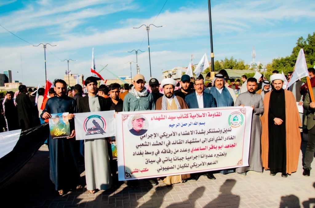 كتائب سيد الشهداء تنظم تظاهرة منددة بالعدوان الامريكي في السماوة مركز محافظة المثنى