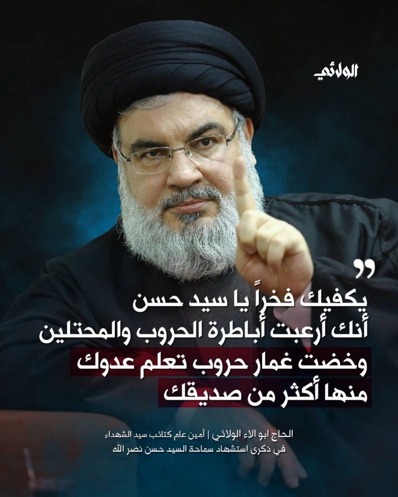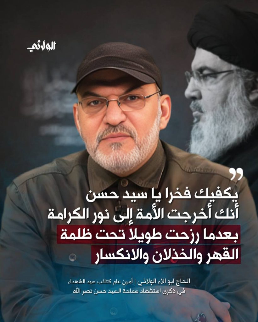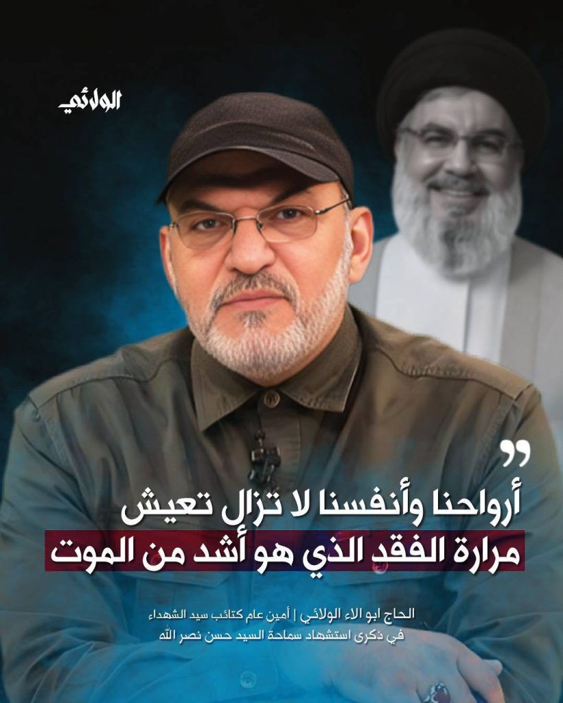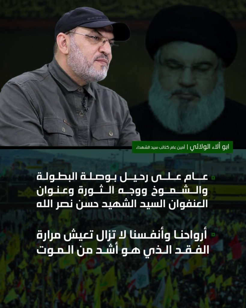 ♦️الولائي: عام على رحيل بوصلة البطولة والشموخ ووجه الثورة وعنوان العنفوان السيد الشهيد حسن نصر الله