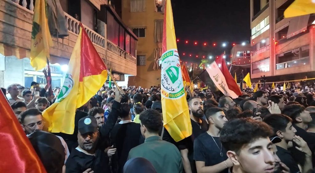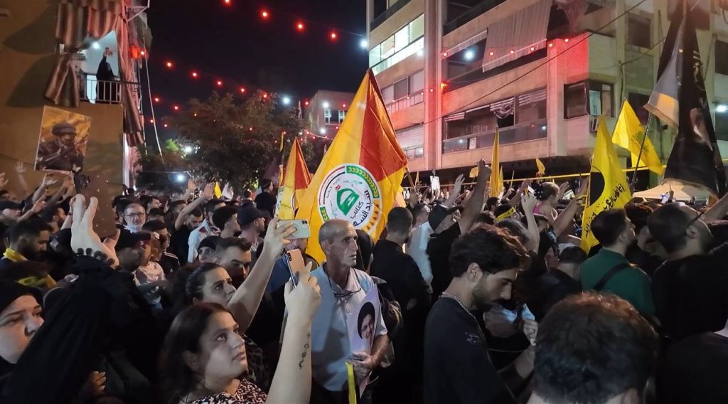من قلب الضاحية الجنوبية في بيروت ومن مكان استشهاد السيد حسن نصر الله ابناء الحاج الولائي يحيون العزاء في الذكرى السنوية الاولى لاستشهاد سيد شهداء الامة.