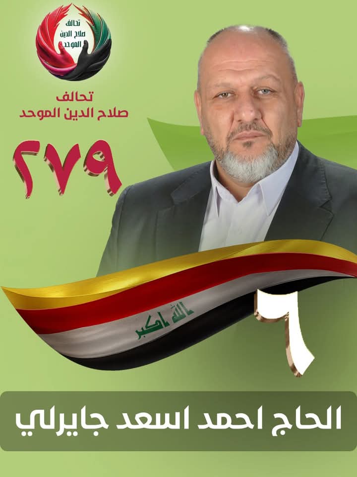 توكلنا على الله ..المرشح عن تحالف صلاح الدين الموحدالحاج احمد اسعد الجايرليرقم القائمة ٢٧٩تسلسل ٦محافظة صلاح الدين