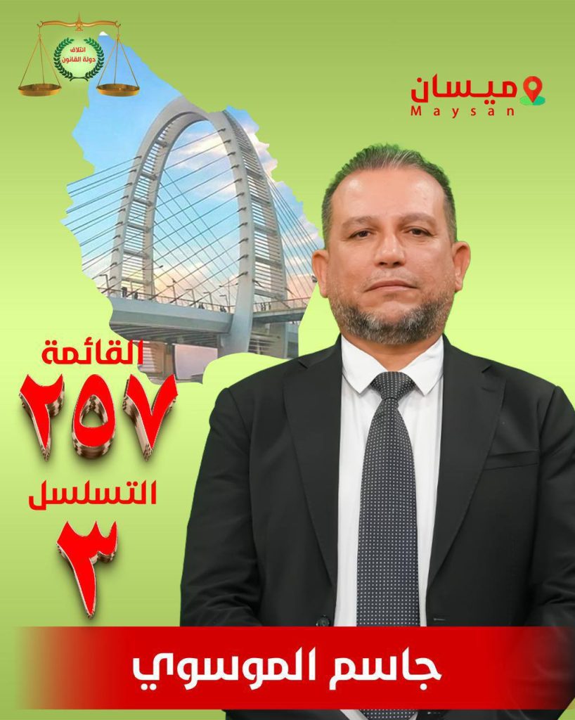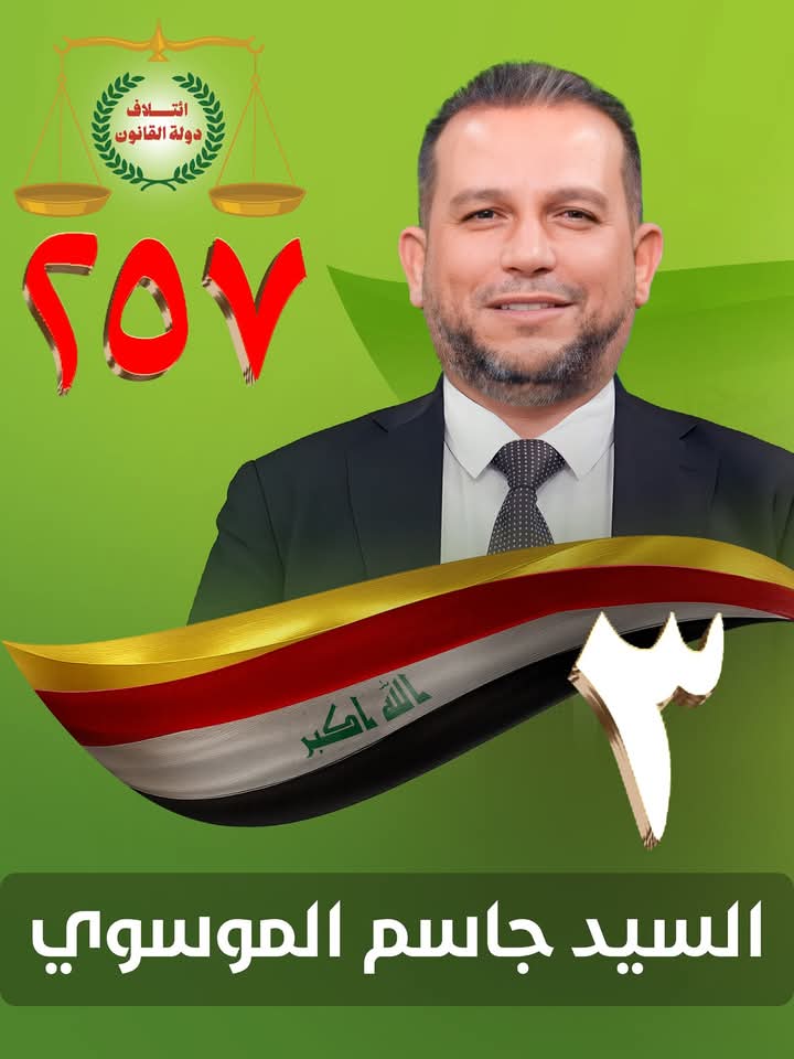 توكلنا على الله ..المرشح عن ائتلاف دولة القانونالسيد جاسم الموسويرقم القائمة ٢٥٧تسلسل ٣محافظة ميسان