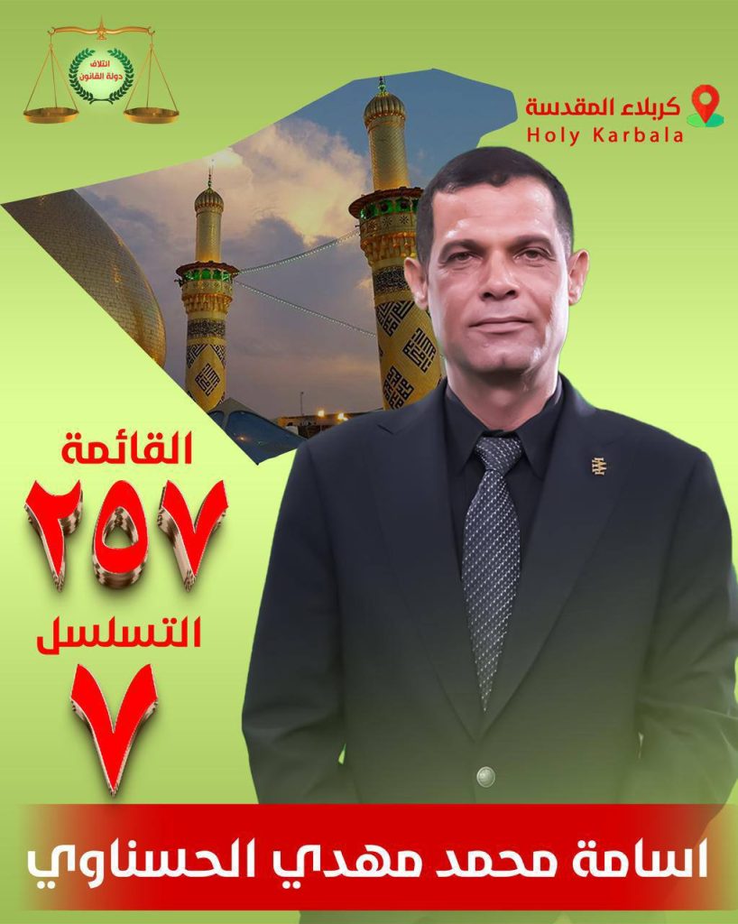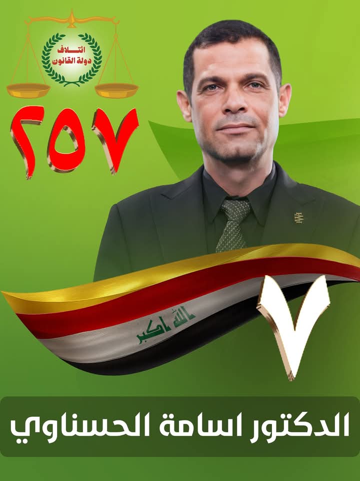 توكلنا على الله ..المرشح عن ائتلاف دولة القانونالدكتور اسامة الحسناويرقم القائمة ٢٥٧تسلسل ٧محافظة كربلاء المقدسة
