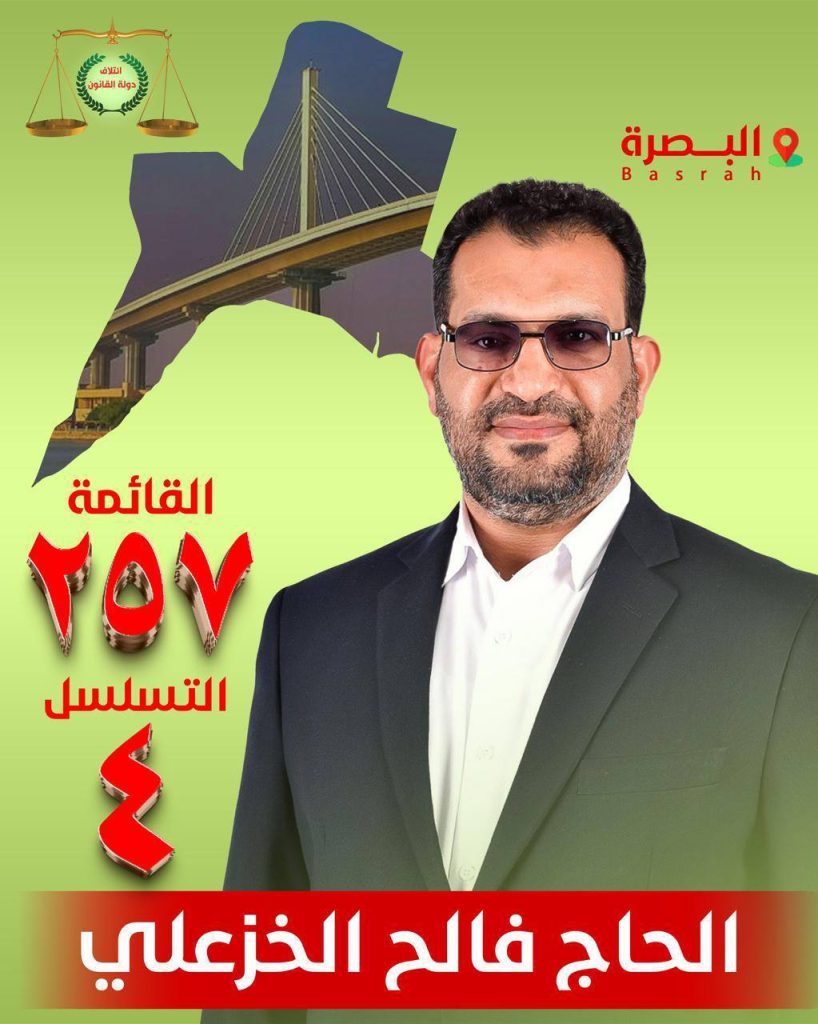 توكلنا على الله ..المرشح عن ائتلاف دولة القانونالحاج فالح الخزعليرقم القائمة ٢٥٧تسلسل ٤محافظة البصرة
