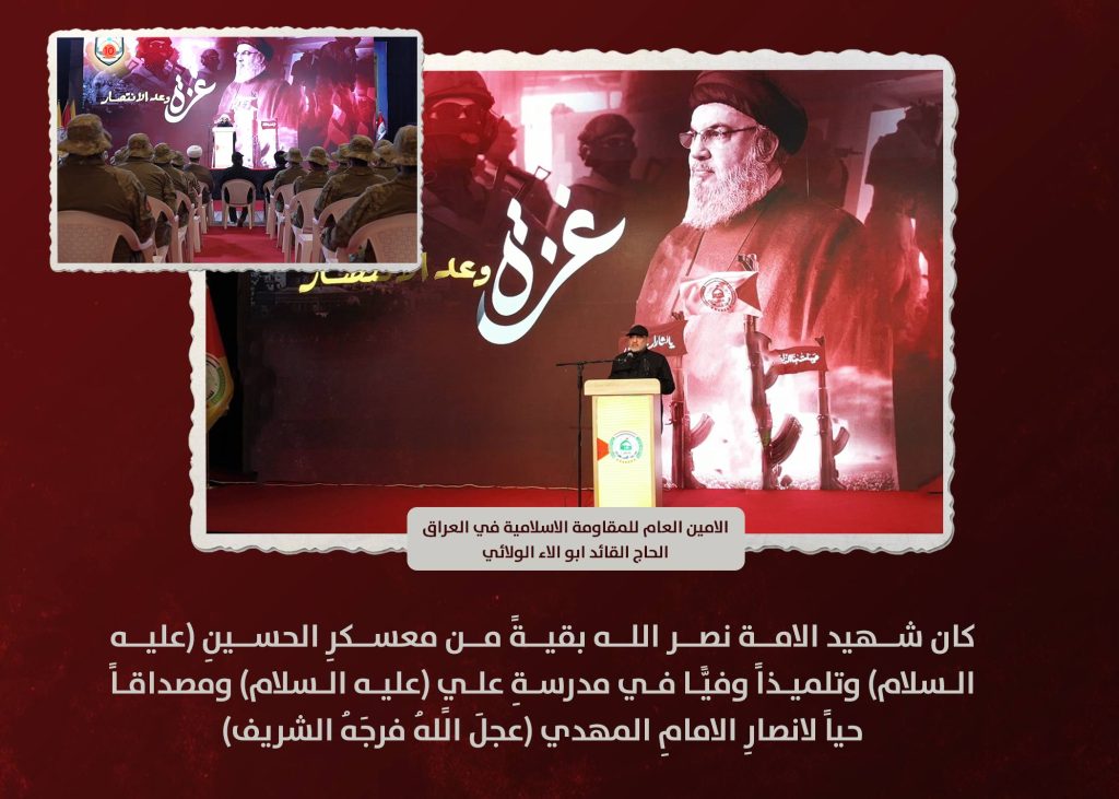 ابو الاء الولائي: كان شهيد الامة نصر الله بقيةً من معسكرِ الحسينِ (عليه السلام) وتلميذاً وفيًّا في مدرسةِ عليٍ (عليه السلام) ومصداقاً حياً لانصارِ الامامِ المهدي (عجلَ اللهُ فرجَهُ الشريف)،