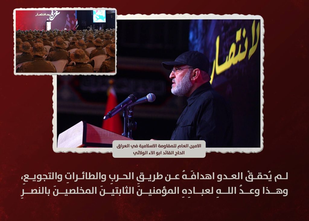 ابو الاء الولائي: لم يُحققْ العدو اهدافَهُ عن طريقِ الحربِ والطائراتِ والتجويعِ، وهذا وعدُ اللهِ لعبادِهِ المؤمنينَ الثابتينَ المخلصينَ بالنصرِ.