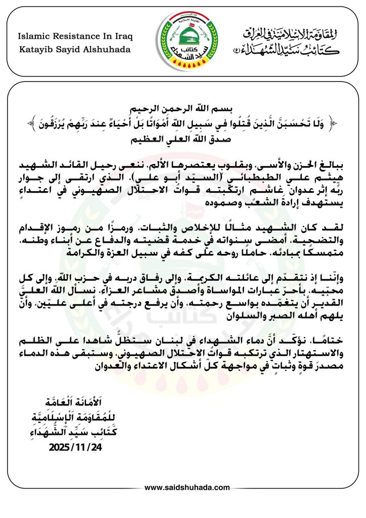 ختامًا، نؤكّد أنّ دماءَ الشهداء في لبنان ستظلّ شاهدًا على الظلم والاستهتار الذي ترتكبه قواتُ الاحتلال الصهيوني، وستبقى هذه الدماء مصدرَ قوةٍ وثباتٍ في مواجهة كلّ أشكال الاعتداء والعدوان.