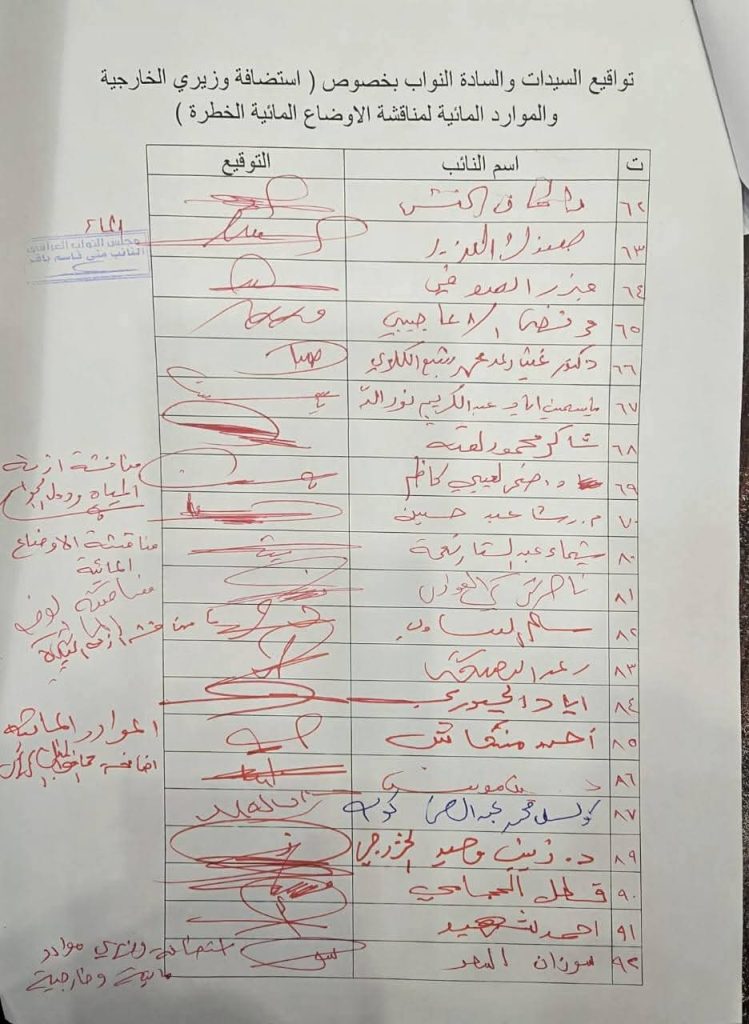 واكدت الغرابي على حصول موافقة رئاسة المجلس على طلبها باستضافة وزيري الخارجية والموارد المائية يوم الأثنين القادم.