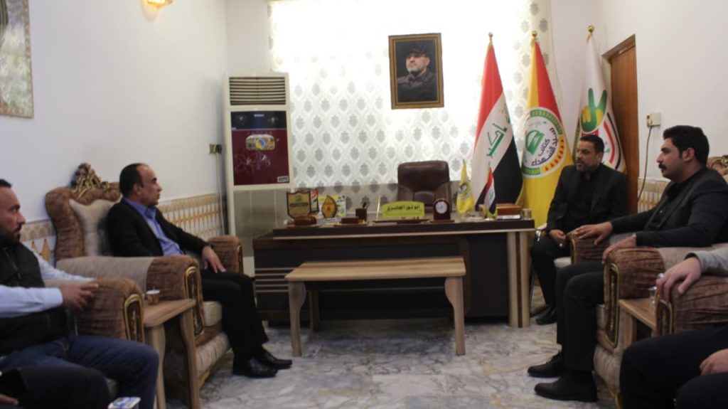 استقبل مدير مكتب كتائب سيد الشهداء في ذي قار الحاج أبو نور الجابري في مكتبه، الحاج كريم خضر السهلاني مسؤول مكتب حركة قوة الدولة في ذي قار، حيث جرى خلال اللقاء تبادل الحديث حول عدد من القضايا ذات الاهتمام المشترك، وبحث سبل تعزيز التواصل والتنسيق بما يخدم العمل ويحقق المصلحة العامة.