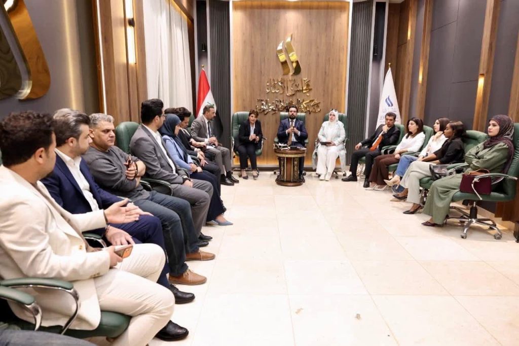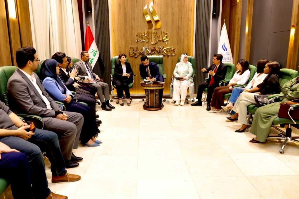 استقبل رئيس مجلس أمناء شبكة الإعلام العراقي ثائر الغانمي ونائب رئيس المجلس سناء سعيد وعضو المجلس د. إسلام السعدي، اليوم الأحد، مذيعي النشرات في قناة العراقية الإخبارية.
