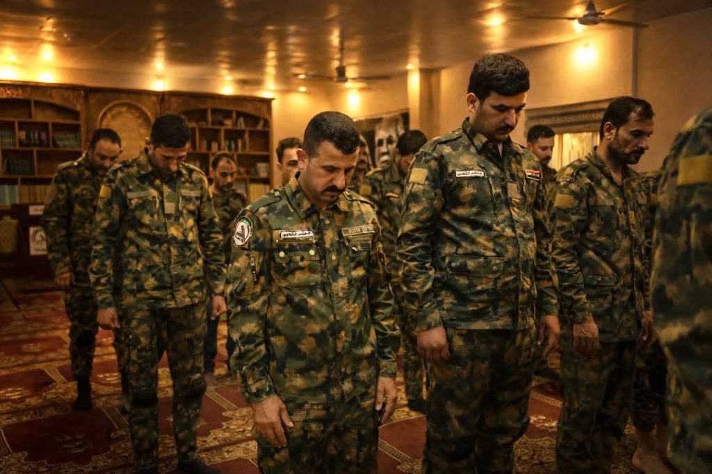 أقيمت صلاة الجماعة الظهرين في مقر اللواء ١٤ ببغداد بإمامة الشيخ علي الحلفي الكاظمي وأعقبتها محاضرة دينية عن فضائل شهر رمضان المبارك وسط حضور من المقاتلين الذين استلهموا من الشهر الفضيل معاني الطاعة والتكاتف.