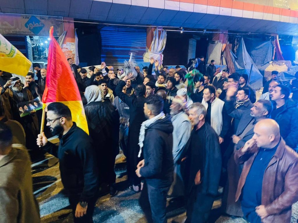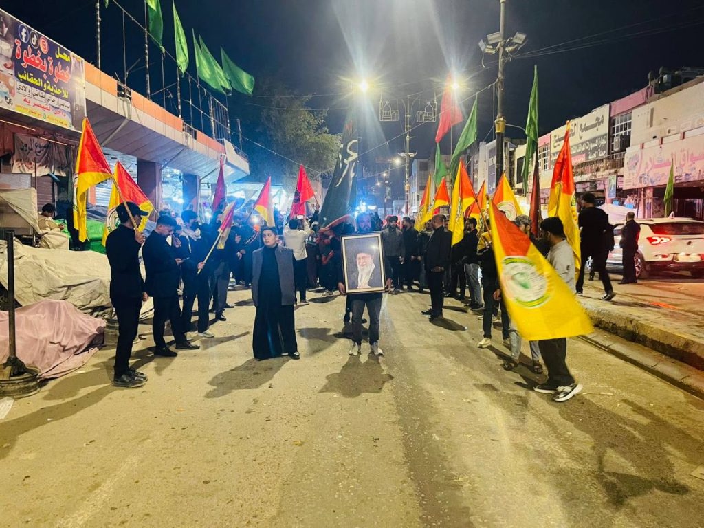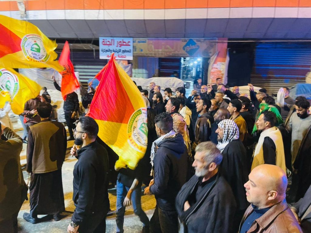 تَحْتَ شِعَارِ (عَلَى طَرِيقِ القُدْس)، وَوَفَاءً لِلرِّجَالِ الذينَ صَدَقُوا مَا عَاهَدُوا اللهَ عَلَيْه؛ شَارَكَتْ (كَتَائِبُ سَيِّدِ الشُّهَدَاءِ) فِي مُحَافَظَةِ الدِّيوَانِيَّةِ الْيَوْمَ، فِي مَرَاسِمِ التَّشْيِيعِ الرَّمْزِيِّ الْحَاشِدِ، تَجْسِيداً لِوَحْدَةِ الْمَصِيرِ وَالثَّبَاتِ عَلَى نَهْجِ الْمُقَاوَمَة انْطَلَقَتِ الْجُمُوعُ الْمُؤْمِنَةُ بِيَقِينٍ لا يَنْكَسِر، مُجَدِّدَةً الْعَهْدَ لِدِمَاءِ الْقَادَةِ وَالشُّهَدَاء، حَيْثُ تَقَدَّمَتْ كَوَادِرُ الْمَكْتَبِ وَمُجَاهِدُوهُ هَذَا الْمَحْفَلَ الْجَنَائِزِيَّ الَّذِي ضَجَّتْ فِيهِ أَصْوَاتُ الْحَقِّ، مُؤَكِّدَةً أَنَّ خَطَّ الْجِهَادِ بَاقٍ وَيَتَمَدَّدُ حَتَّى تَحْقِيقِ النَّصْرِ الْمُبِين. إِنَّ زَحْفَ الدِّيوَانِيَّةِ الْيَوْمَ هُوَ رِسَالَةُ صُمُودٍ بَارِكَتْهَا دِمَاءُ الشُّهَدَاء، وَتَأْكِيدٌ عَلَى جُهُوزِيَّةِ رِجَالِ (سَيِّدِ الشُّهَدَاءِ) فِي كُلِّ الْمَيَادِينِ لِحِمَايَةِ الْمُقَدَّسَاتِ وَإِفْشَالِ مَخَطط الاسْتِكْبَار.”**