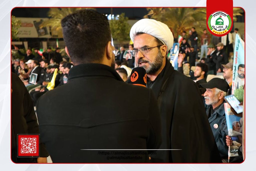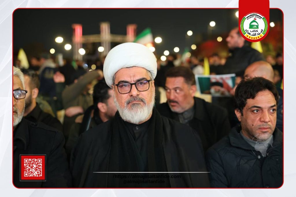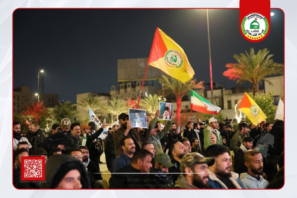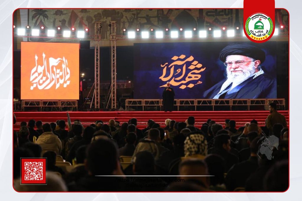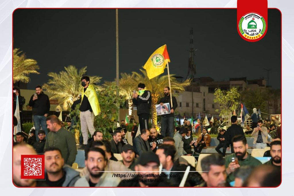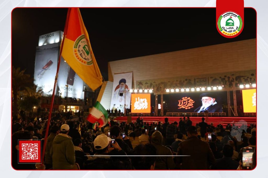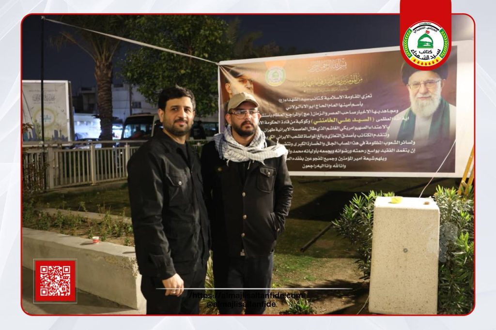 شارك المجلس التنفيذي المركزي للمقاومة الإسلامية كتائب سيد الشهداء (عليه السلام) في مجلس العزاء المركزي الذي أُقيم مساء الخميس 15 رمضان 1447هـ الموافق 5-3-2026 في ساحة التحرير وسط العاصمة بغداد، تضامناً مع الجمهورية الإسلامية الإيرانية واستذكاراً لشهيد الأمة سماحة آية الله العظمى ولي أمر المسلمين الإمام السيد علي الحسيني الخامنئي (قدس سره الشريف).