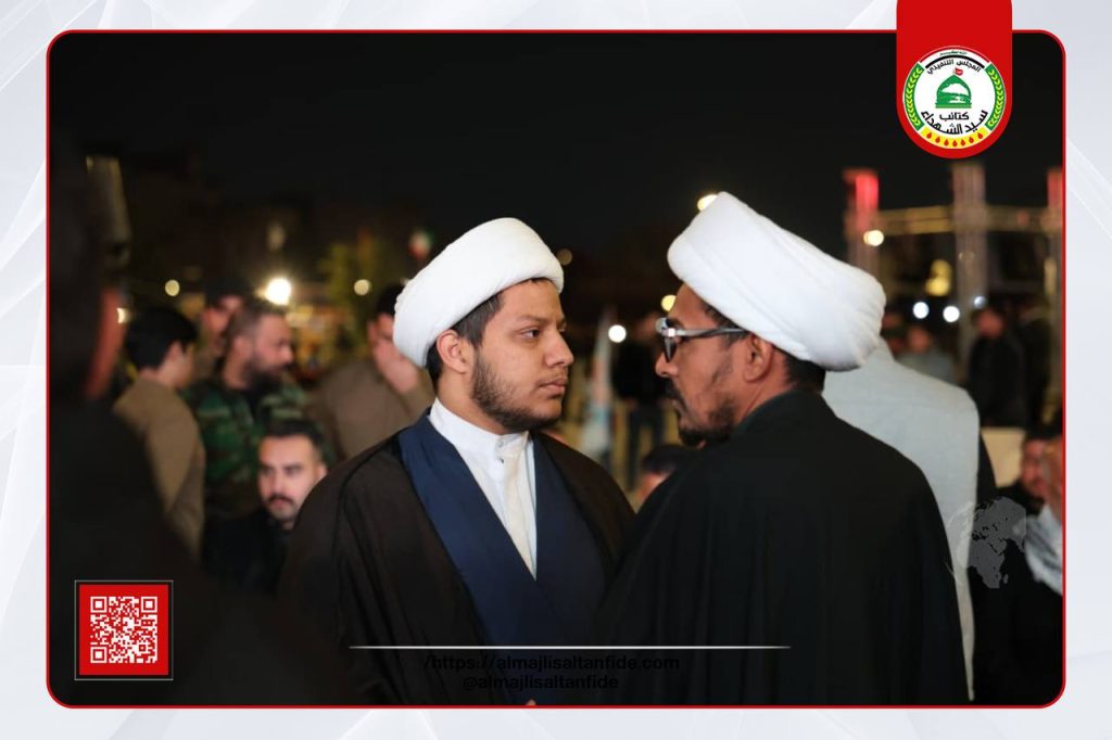 رئيس المجلس التنفيذي الحاج أبو رضا المالكي، ومدير القسم الثقافي المركزي سماحة الشيخ الدكتور نور الساعدي يرافقه عدد من مشايخ وأعضاء القسم الثقافي المركزي، حيث ألقى سماحته كلمةً في المجلس استعرض فيها مآثر الفقيد ودوره في نصرة قضايا الأمة، كما حضر مدير ملف التنظيمات المركزية الأستاذ علي شايع، ومدير مكتب المجلس التنفيذي في الرصافة الثانية الأستاذ كرار اللامي، إضافة إلى مشاركة موكب هيئة سيد الشهداء (عليه السلام) الخدمي والشيخ كاظم الفرطوسي المتحدث باسم كتائب سيد الشهداء.”