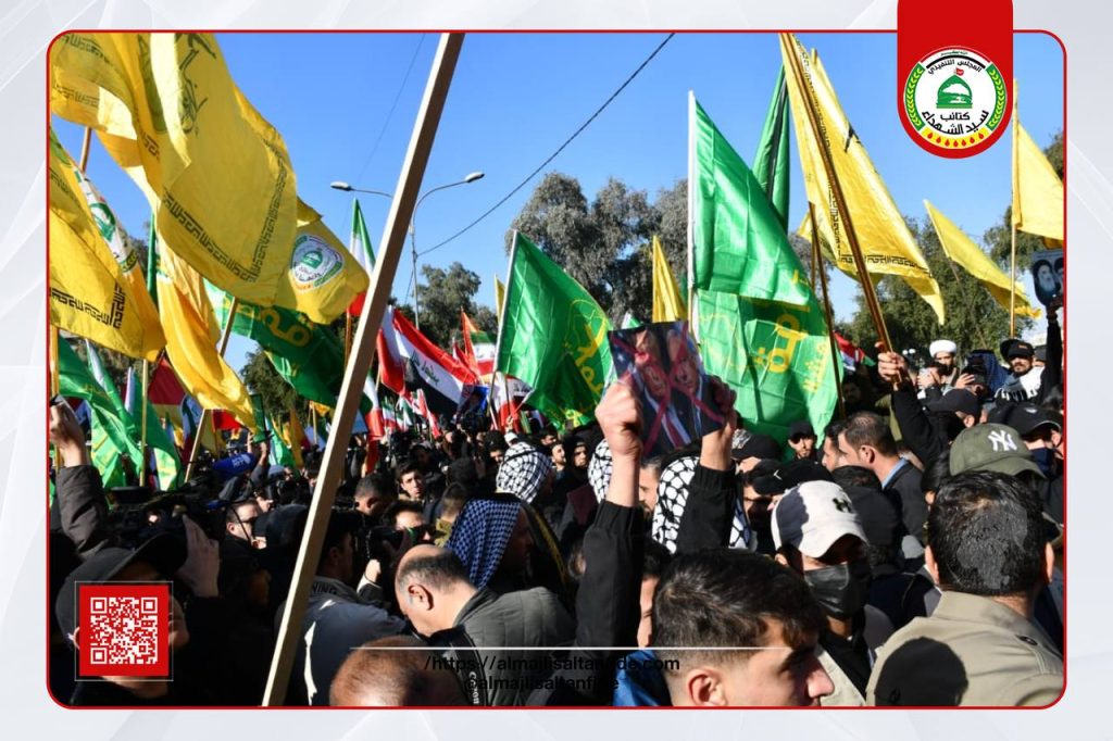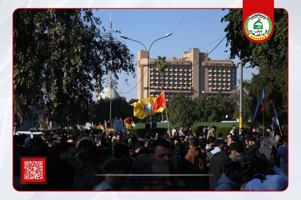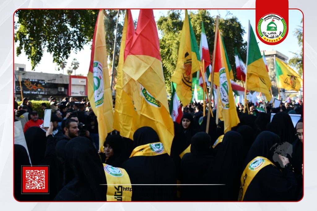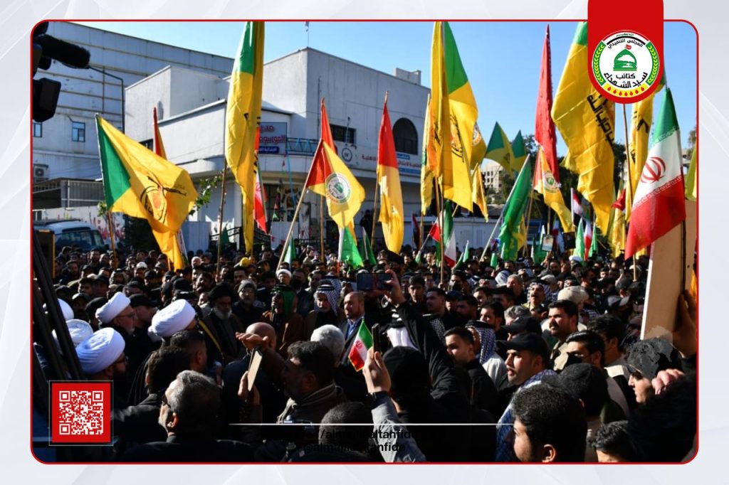 شيبة وشباب ونساء ومشايخ ومحبين وأنصار Kـتائبُ سيد الـSHـهداء (عليه السلام) تشارك في الوقفة التضامنية مع الجمهورية الإسلامية وإعلان الولاء المطلق للإمام السيد علي الخامنئي (دام ظلّه وامد الله بعمره) أمام السفارة الإيرانية لدى #بغداد .