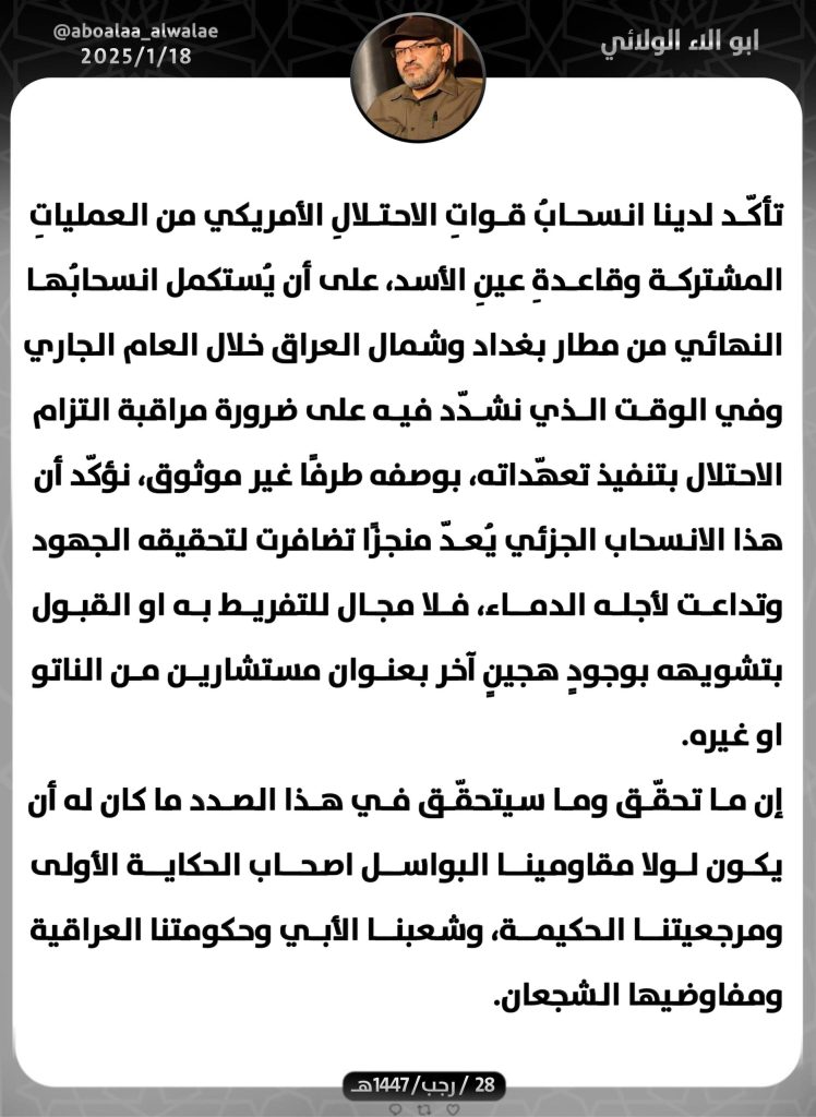 الحاج ابو الاء الولائي يدعو الى اجتماع طارئ لتنسيقية المقاومة العراقية