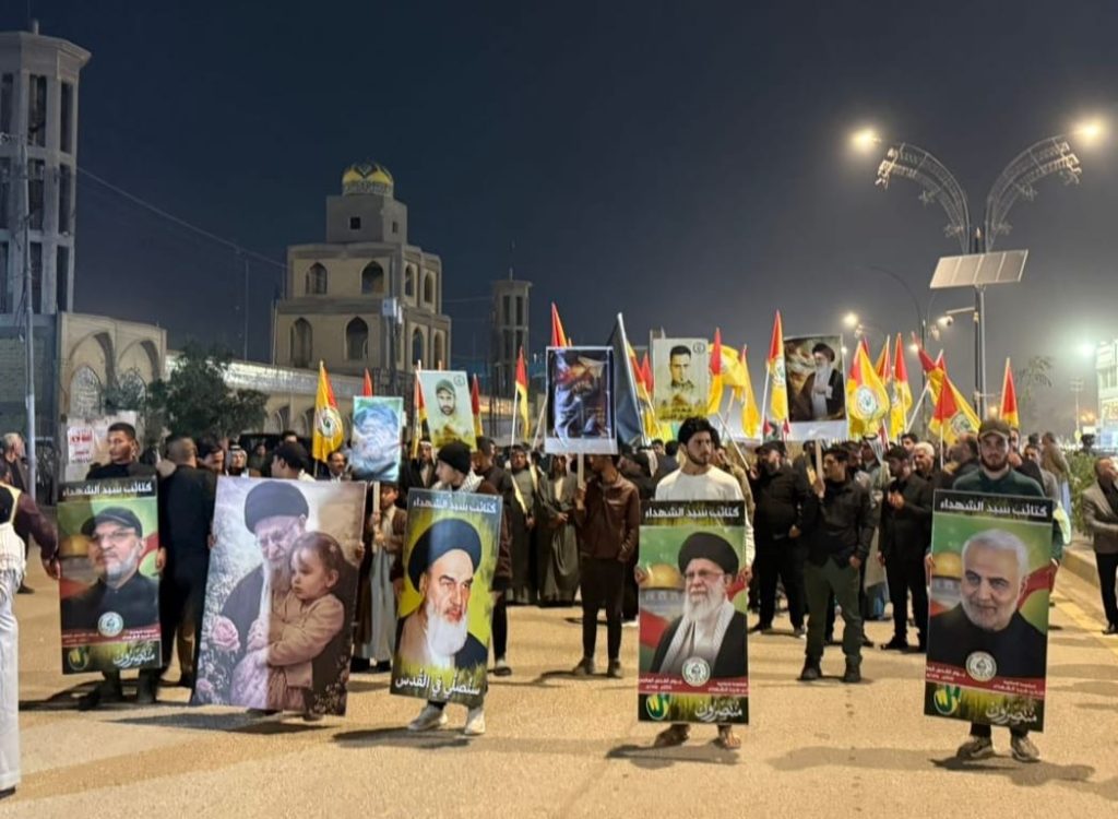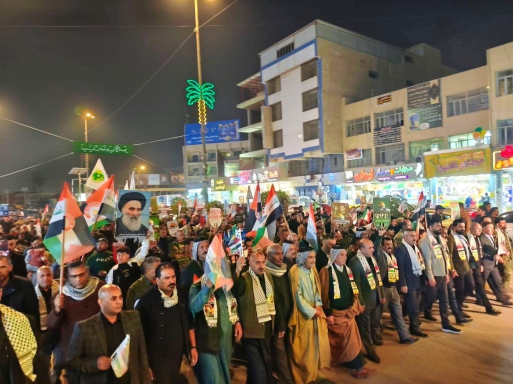 شاهد.. تظاهرة حاشدة لأبناء الولائي قرب الجسر المعلق لمساندة الجمهورية الإسلامية وبمشاركة قيادية رفيعة لمدراء المكاتب في المجلس التنفيذيّ