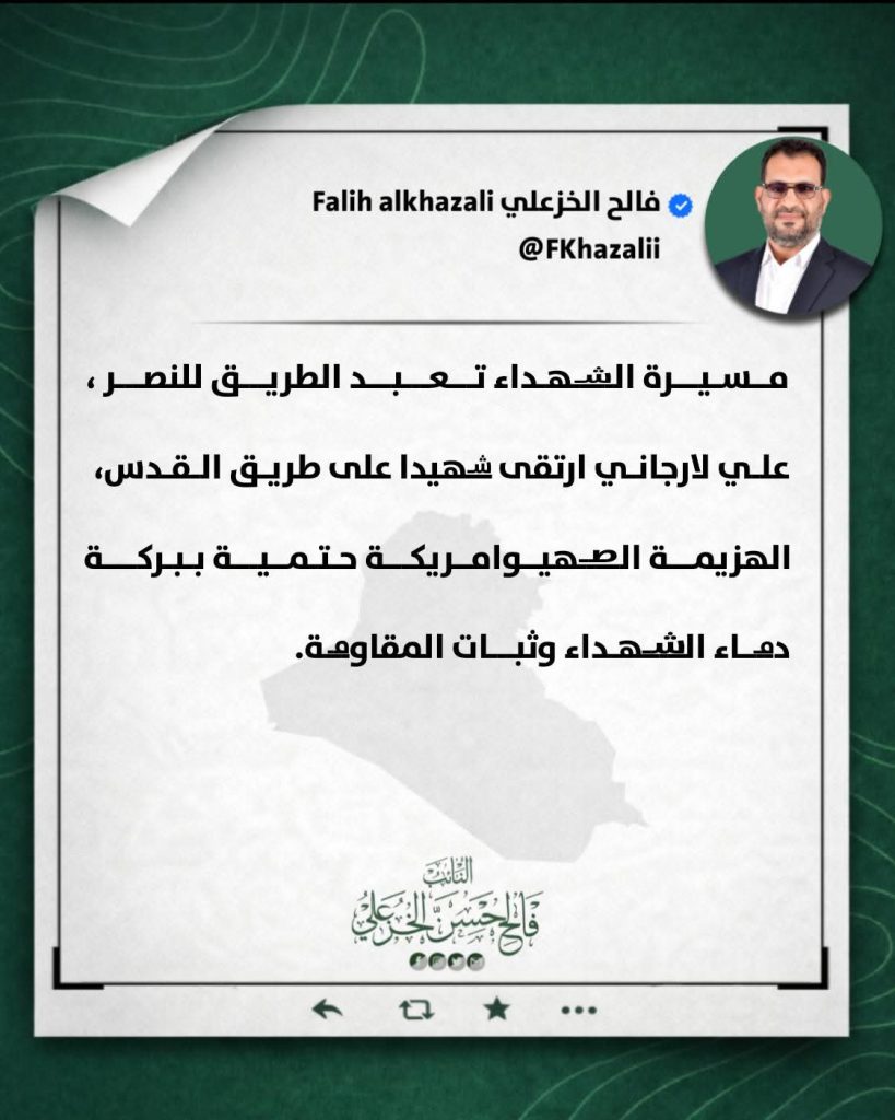 كلمة رئيس كتلة منتصرون النيابية فالح الخزعلي بشأن الانتهاكات للسيادة العراقية والعــدوان على الجمهورية الإسلامية الإيرانية