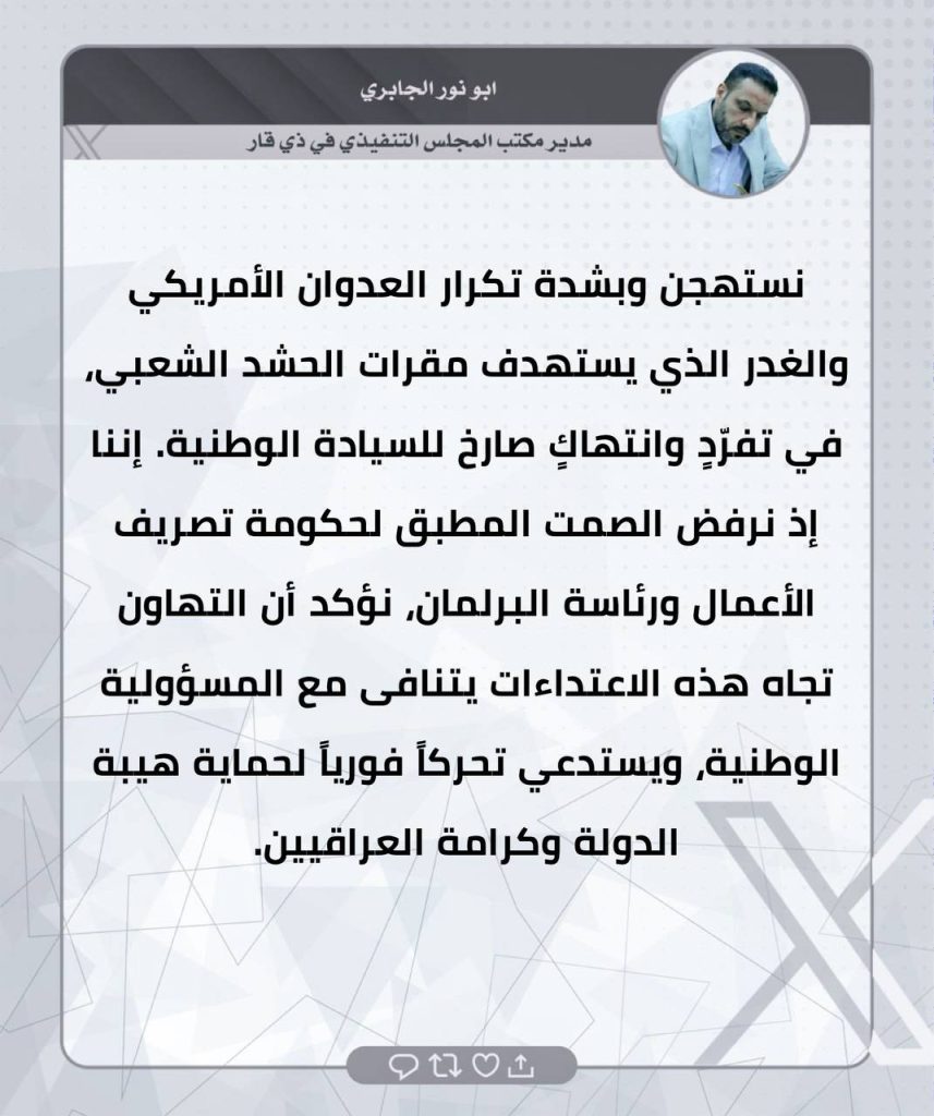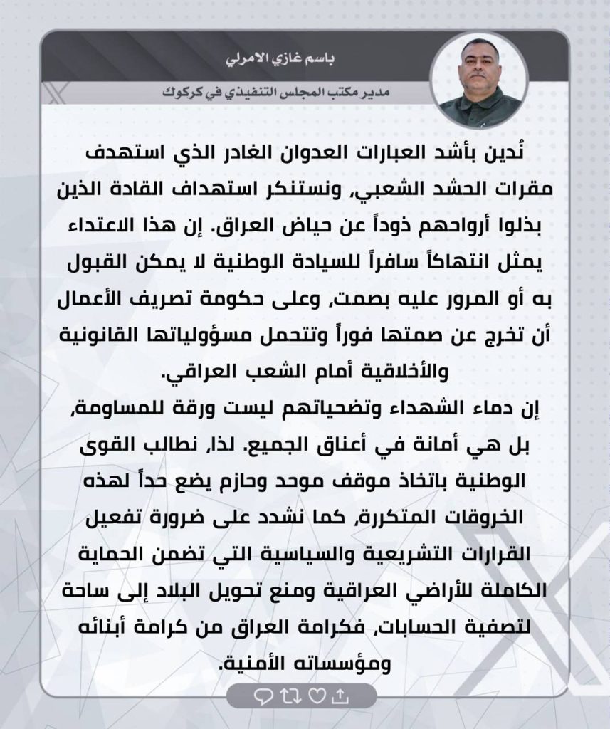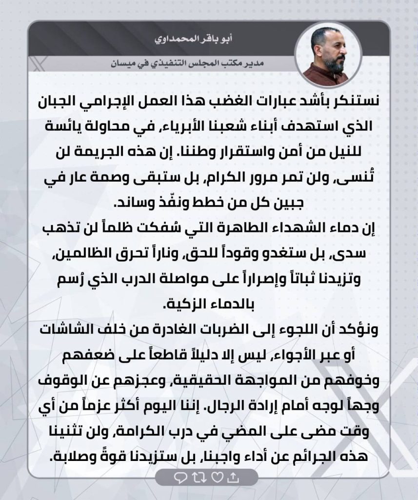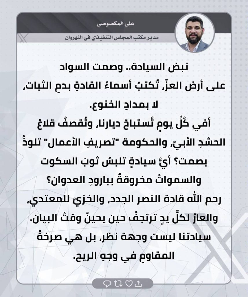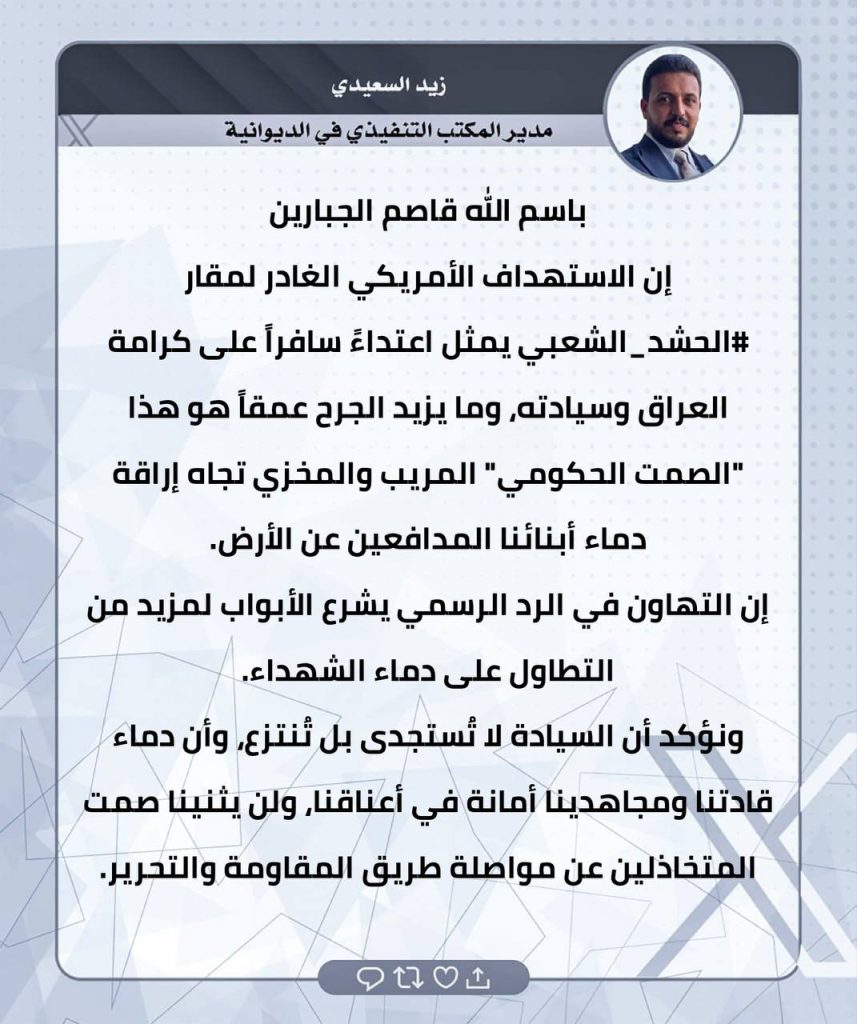 ⚫️لثأرنا… وعدٌ آتٍ.. تغريدات الحاج صفاء المالكي ومدراء المكاتب التنفيذية في المحافظات