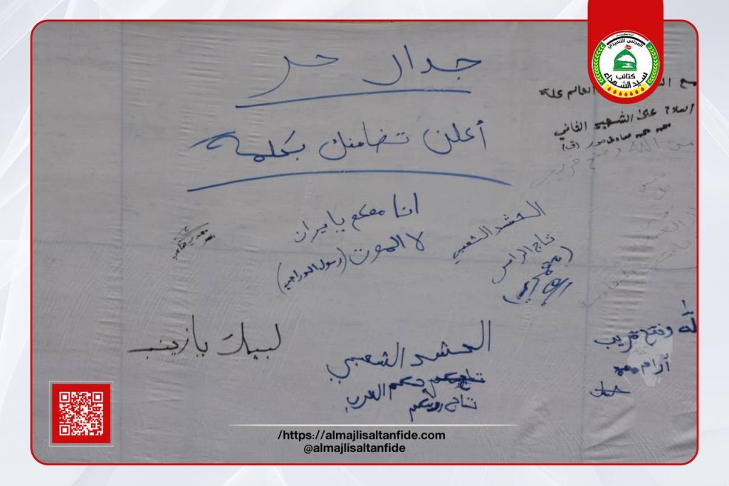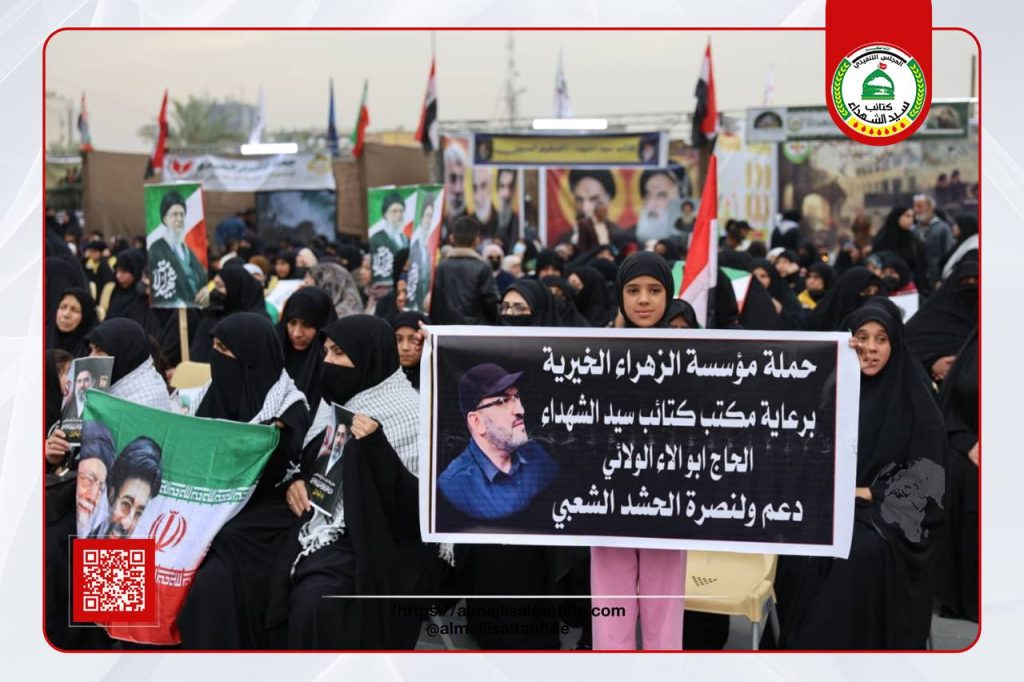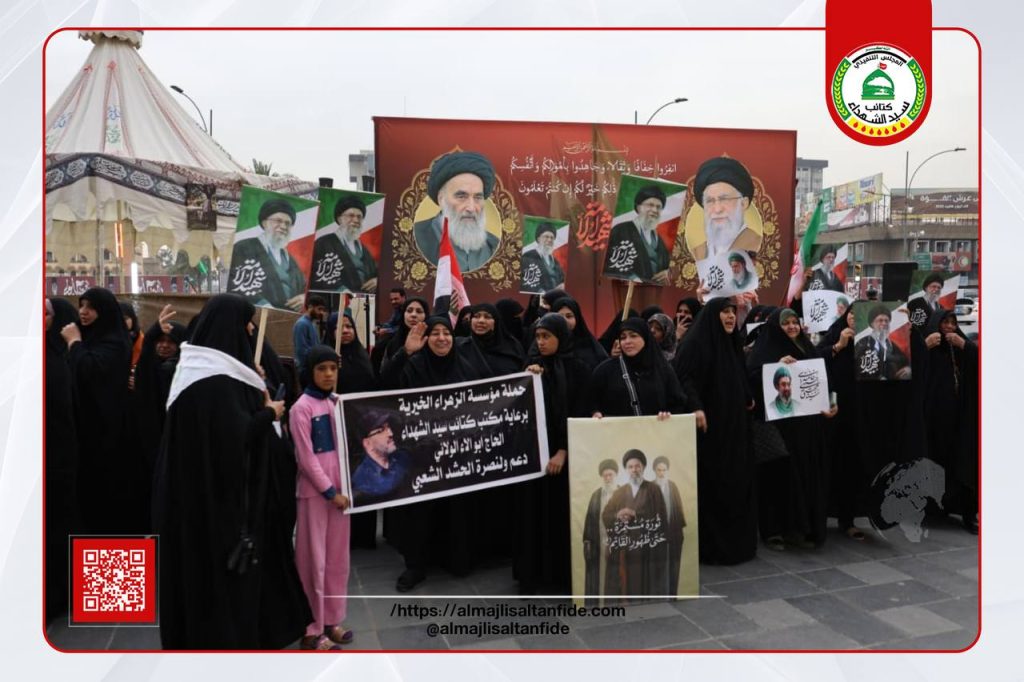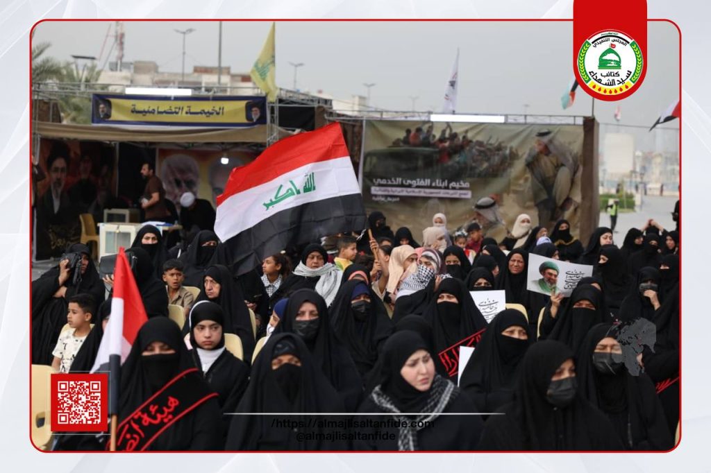 لبّت التنظيمات النسوية في المجلس التنفيذي دعوة المشاركة في (خيمة التضامن) التي أُقيمت في ساحة التحرير وسط بغداد، تنديداً بالعدوان الصهيوأمريكي، وتجسيداً لمواقف الوفاء لشهداء الأمة الأبرار.
