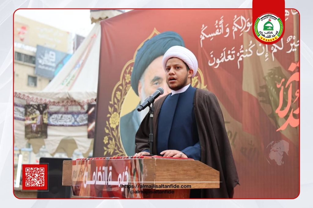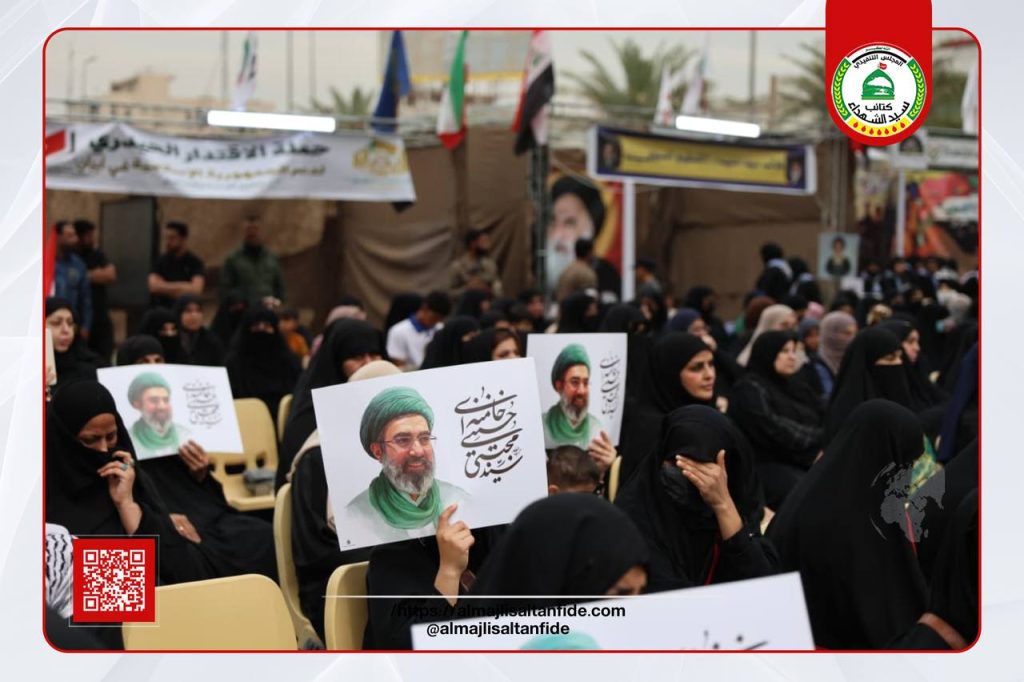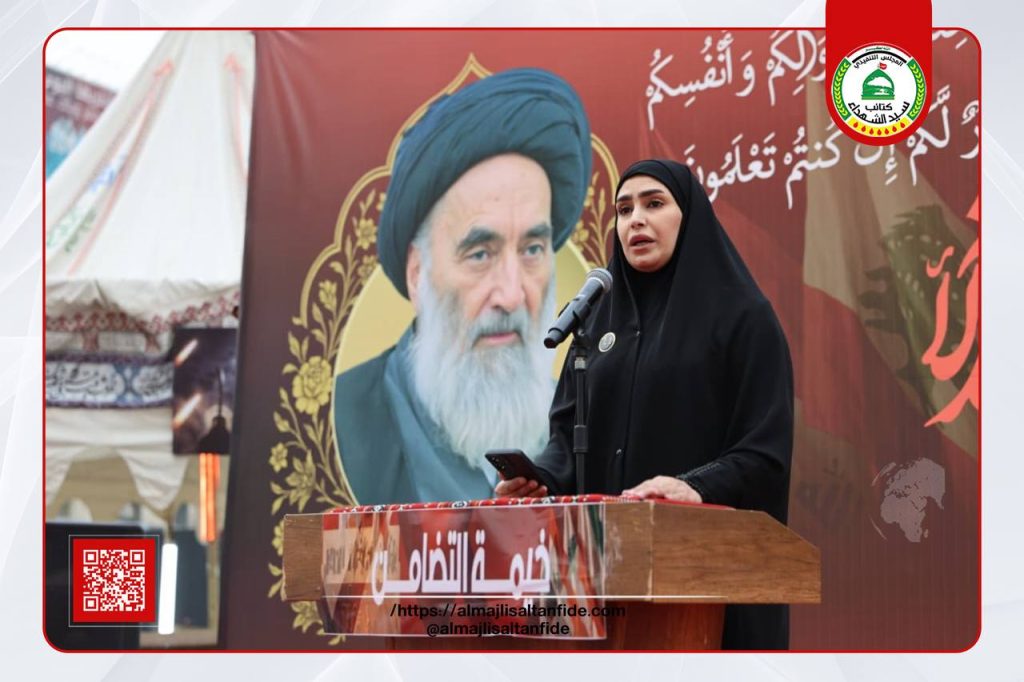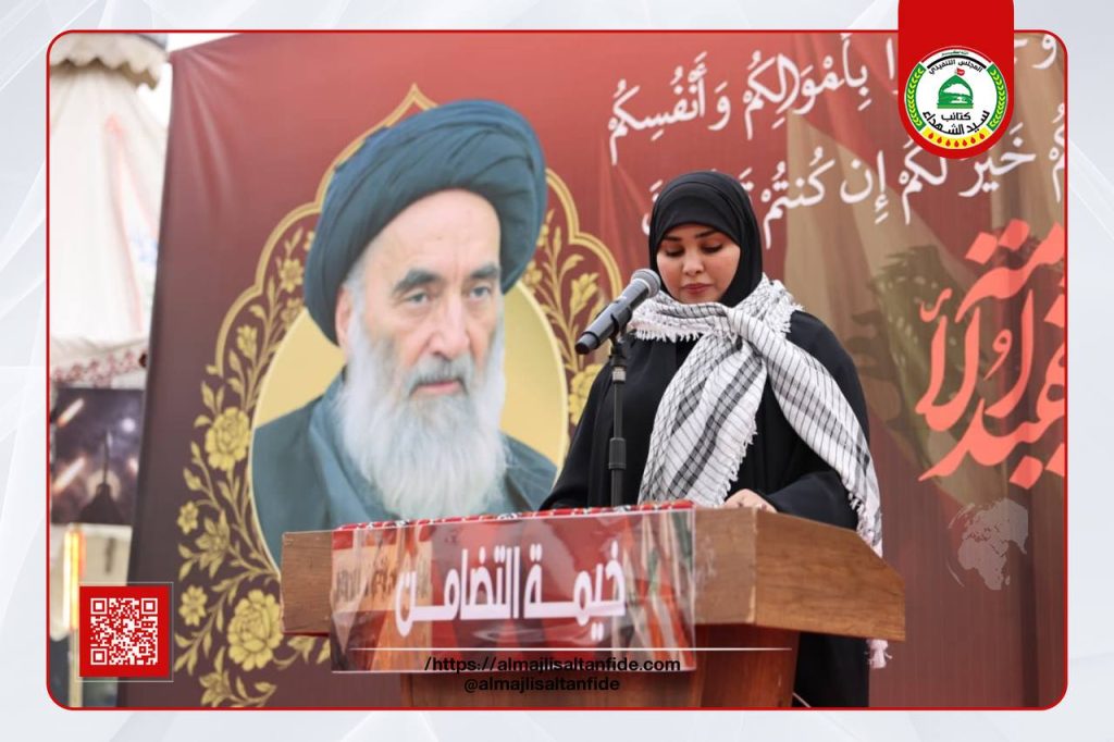 وتضمنت فقرات المنصة كلمات لكل من مسؤولة القسم النسوي الست ابتسام الكعبي، ومعاونة مسؤولة القسم النسوي الست أم حسن الكعبي، والإعلامية في المجلس التنفيذي الست صابرين العكيلي، أكدن خلالها أهمية الحضور النسوي في ميادين الموقف والتعبير عن رفض العدوان.