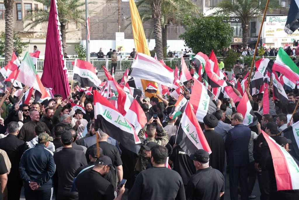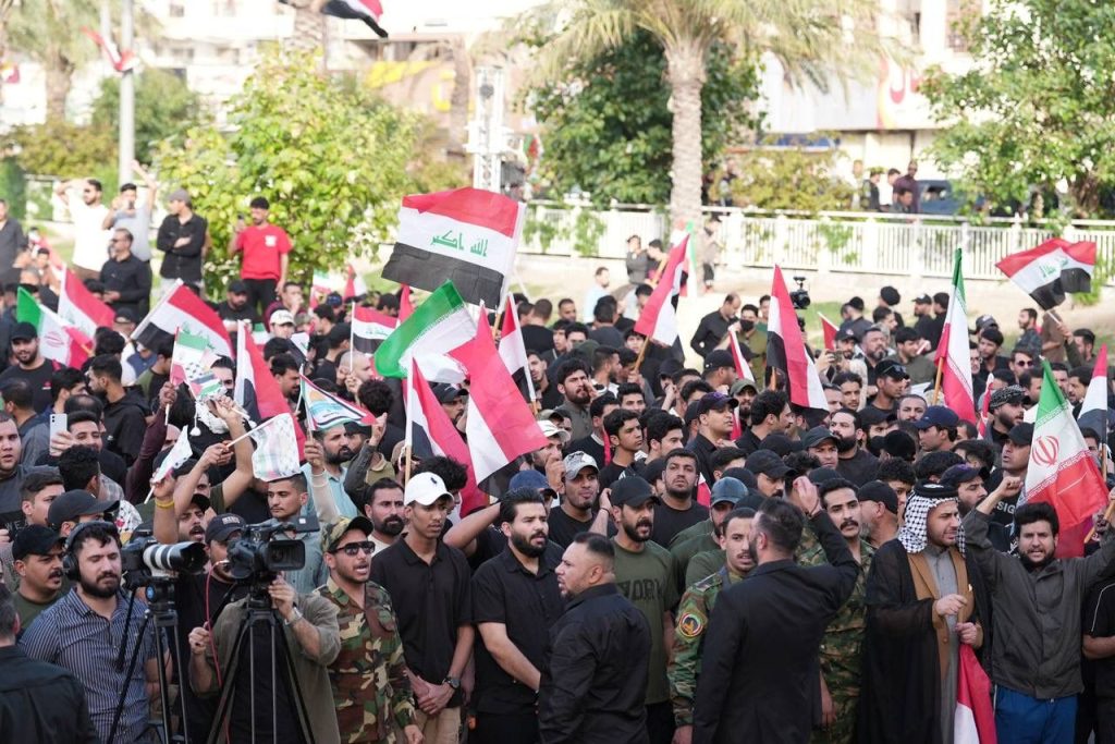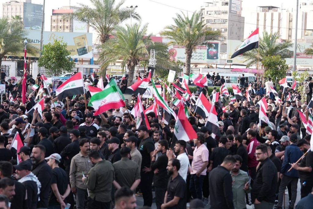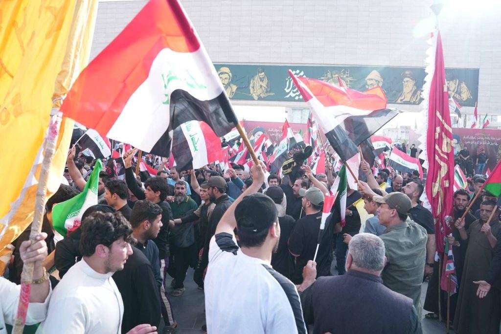 الوقفة الشعبية التضامنية مع الجمهورية الإسلامية الإيرانية اليوم في ساحة التحرير التي ضمت عدة فعاليات مختلفة رفضا الاعتداءات الصهيوامريكية