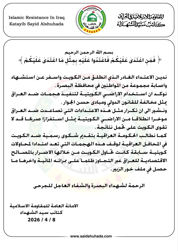 نشير الى ان تكرار مثل هذه الاعتداءات التي تصاعدت ضد العراق موخرا انطلاقا من الاراضي الكويتية يمثل استفزازا صريحا قد لا تقوى الكويت على تحمل نتائجة.