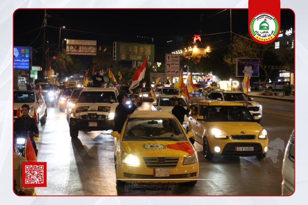 نظّمت التنظيمات المركزية التابعة للمجلس التنفيذي مسيرة عجلات جابت شوارع العاصمة، بتوجيه من رئيس المجلس التنفيذي الحاج أبو رضا المالكي وبإشراف مباشر من مدير ملف التنظيمات المركزية الأستاذ علي شايع، احتفاءً بـ“نصر الجمهورية الإسلامية في إيران وهزيمة أميركا والكيان”.
