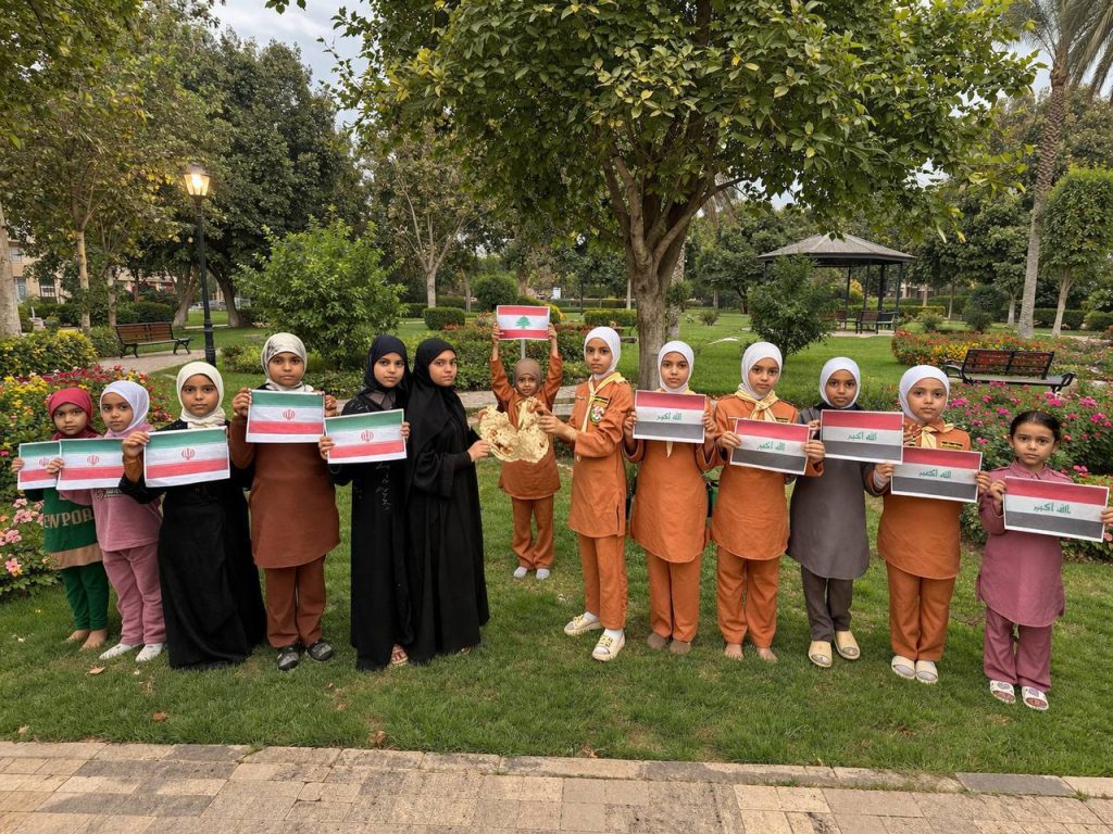 كشافة سيد الشهداء مفوضية بغداد للمرشدات فوج بانتظار القائم (عج) وتم رفع اعلام العراق وإيران والمقاومة الإسلامية حزب الله