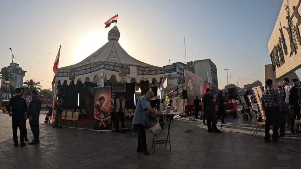 شاركت تنظيمات المجلس التنفيذي للمـ..قاومة الإسـ..لامية Kـتائب سيد الشـ…هداء (عليه السلام) في فعالية (خيمة التضامن) التي احتضنتها ساحة التحرير وسط العاصمة بغداد، يوم الجمعة 17-4-2026، الموافق 27 شوال 1447هـ.