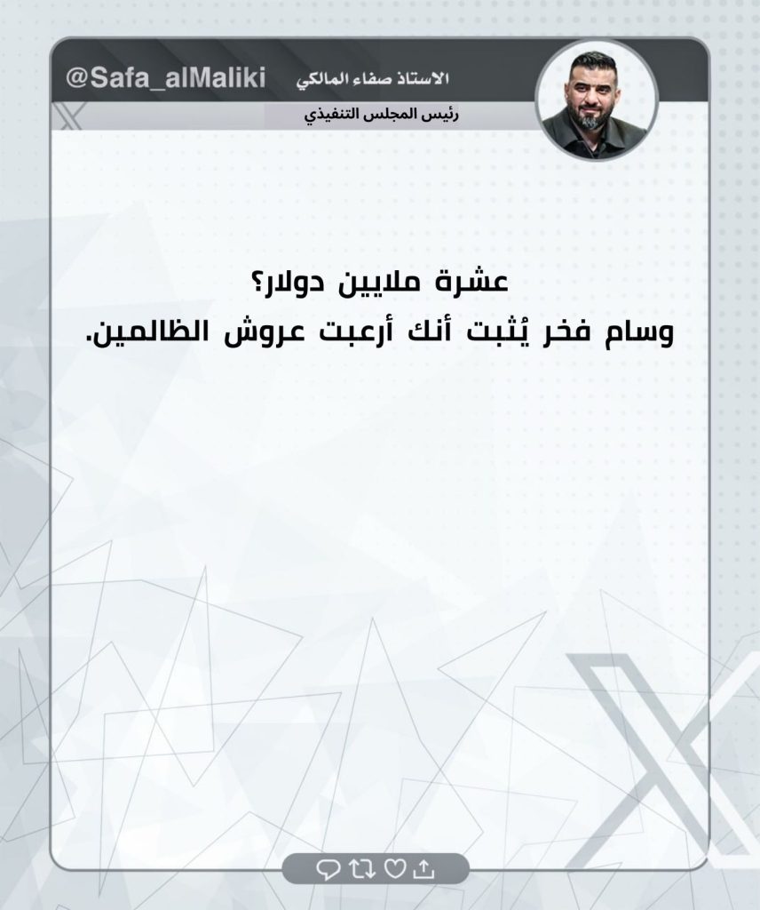 ⚫️تغريدة رئيس المجلس التنفيذي الأستاذ صفاء المالكي: