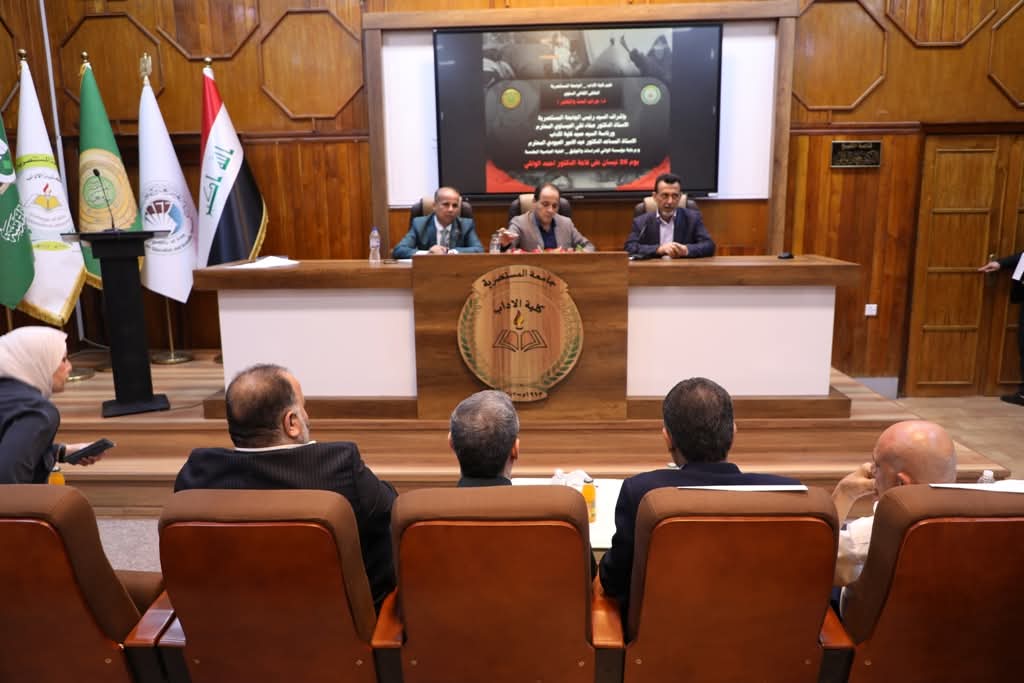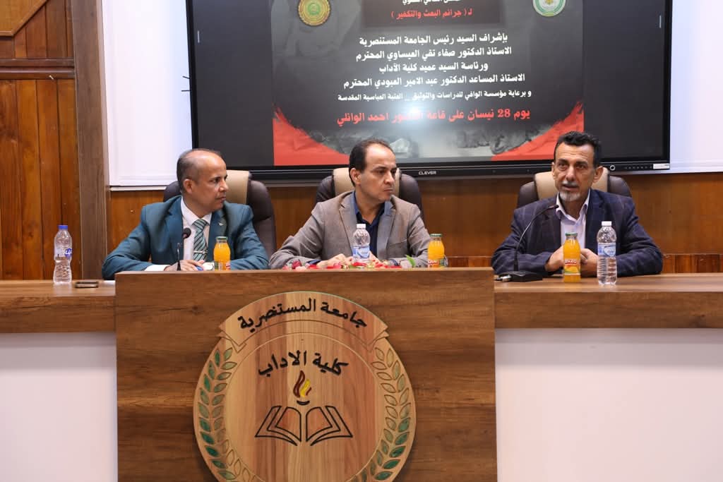 أقامت كلية الآداب في الجامعة المستنصرية الملتقى الثقافي السنوي لجـ*رائم البعـ*ث والتكـ*فير ، بإشراف الأستاذ الدكتور صفاء تقي العيساوي، وبرئاسة الأستاذ المساعد الدكتور عبد الأمير العبودي، وبرعاية مؤسسة الوافي للدراسات والتخطيط – العتبة العباسية، وبحضور السيد رئيس الجامعة ومساعده الإداري الأستاذ الدكتور جاسم محمد عبد العبود، إلى جانب نخبة من الشخصيات الأكاديمية والعلمية وممثلين عن مؤسستي الشــ*هداء والسجـ*ناء.