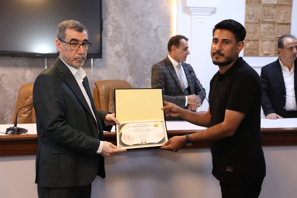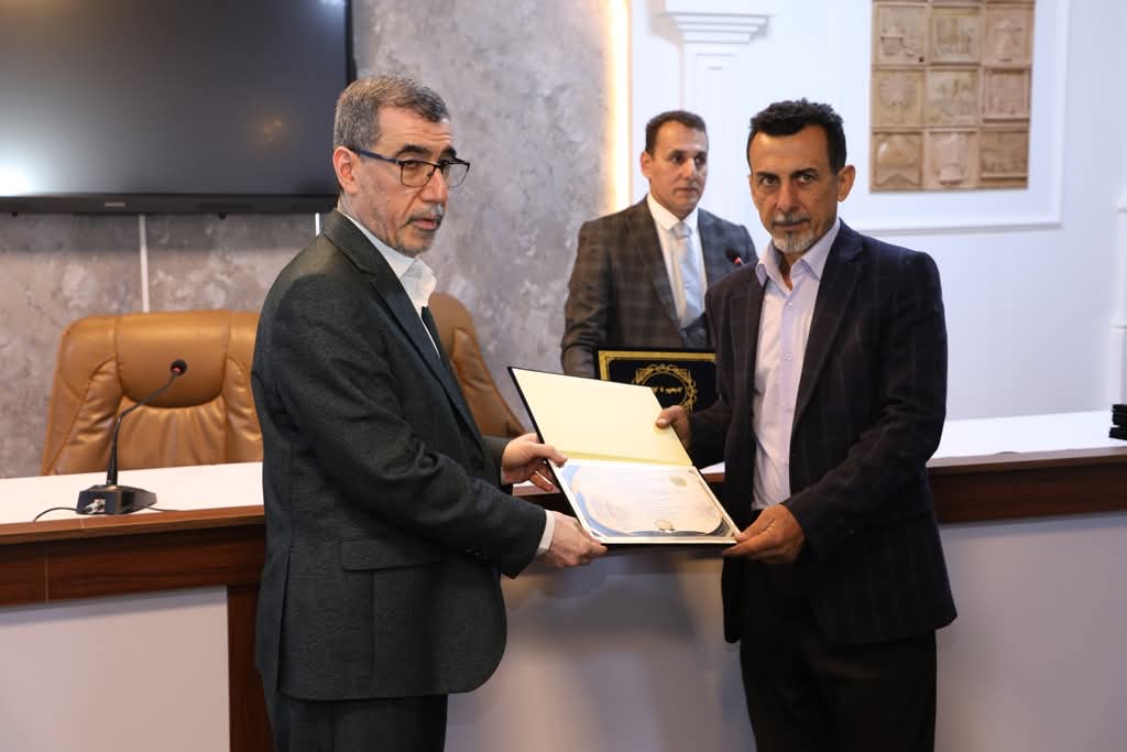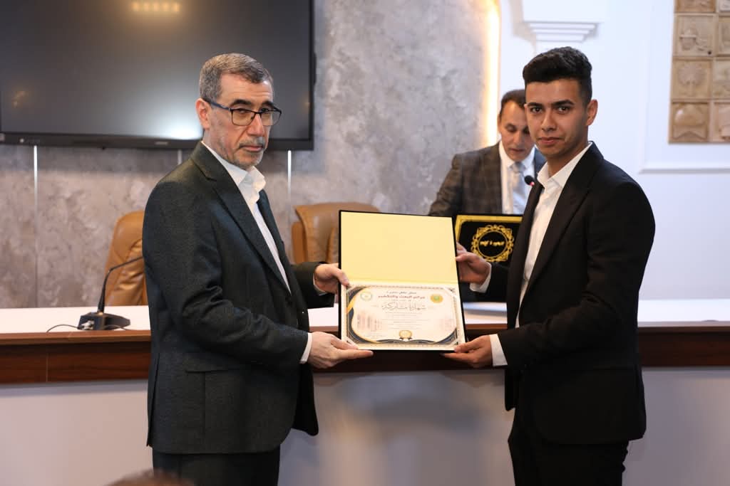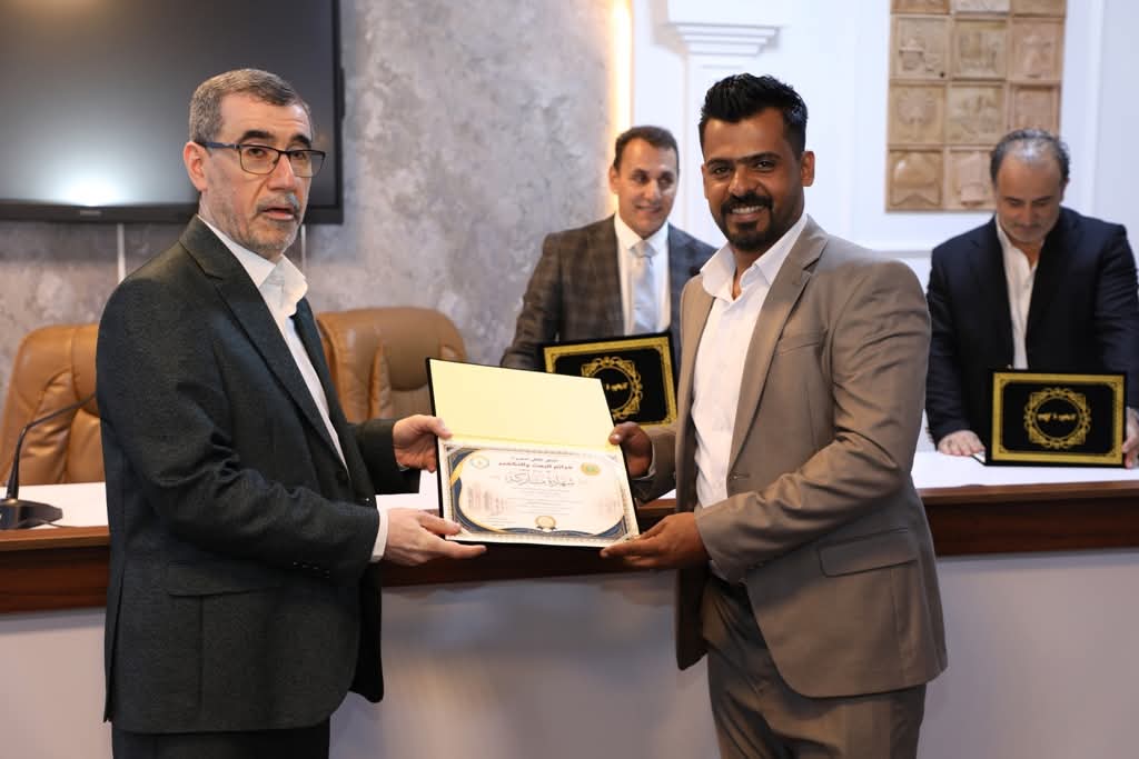واختُتم الملتقى بتوزيع الشهادات التقديرية والدروع على المشاركين، فضلاً عن منح درع مؤسسة الشهـ*داء إلى عميد كلية الآداب الأستاذ المساعد الدكتور عبد الأمير العبودي، تثميناً لجهوده في دعم وإقامة الفعاليات التي توثق الذاكرة الوطنية وتخلد تضحـ*يات الشهـ*داء.