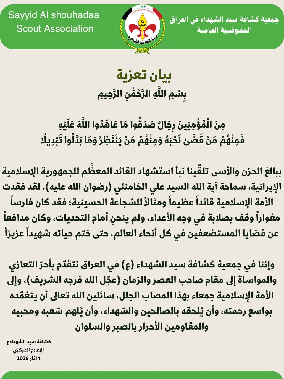 زار وفد من المقاومة الاسلامية في العراق كتائب سيد الشهداء (ع) ممثل المرجعية الدينية في محافظة واسط قضاء النعمانية سماحة السيد حبيب الخطيب.